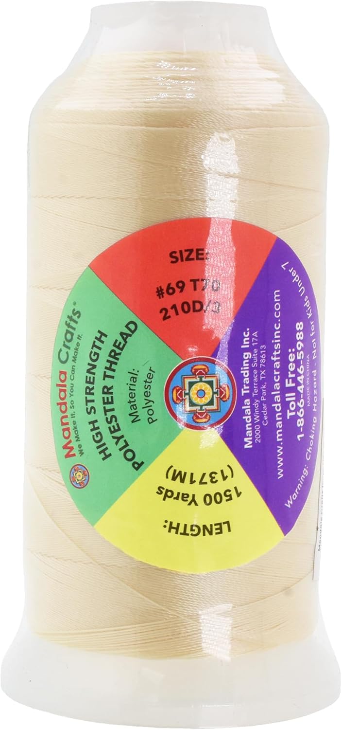 Mandala Crafts Ivory Heavy Duty Thread -1500 Yds Tex 70 Thread for Sewing Drapery Jeans Leather Hair - Bonded Polyester Thread Outdoor Marine Upholstery Threads