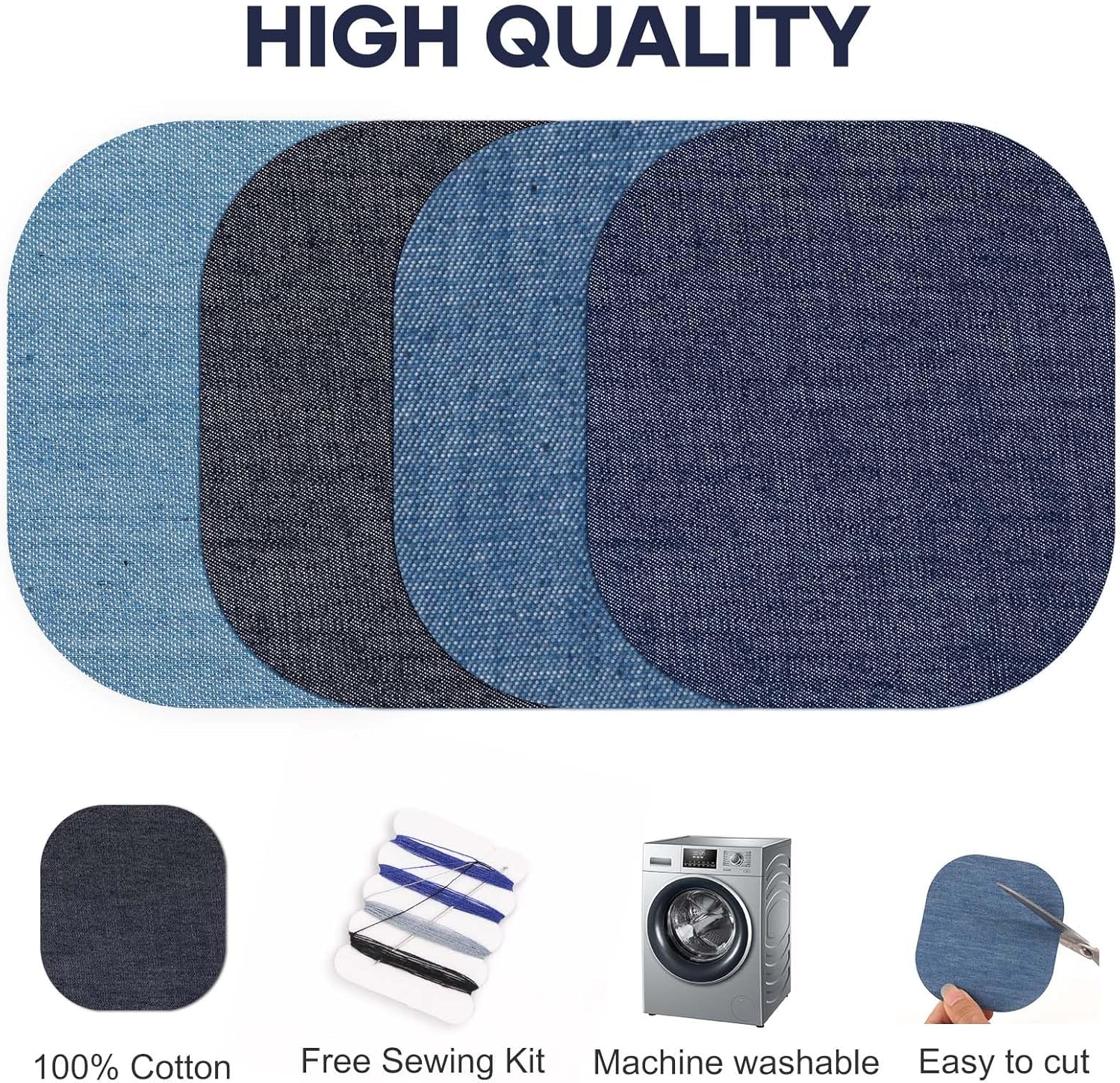 - DIMENSIONS & COLORS: The Patches for Jeans Kits include 20 pieces of denim patches with a size of 3.75"*4.25", which can help to hide the shortcomings of both small and large holes and enough to create your own design. Our clothing patches have four colors, suitable for a variety of different colors of jeans. The free sewing kit is included for ensuring the bond firm