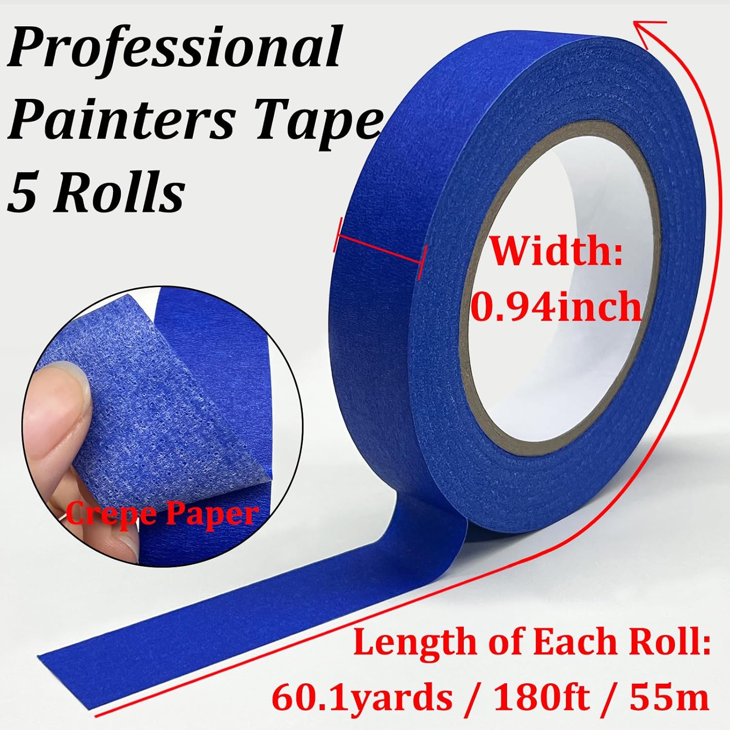 Blue Tape Painters Tape, 5 Rolls Premium General Purpose Masking Tape Painter's Tape (0.94-Inch x 60.1 Yards), Paint Tapes for Walls Painting, DIY Crafts, Arts, Decoration, Removes Easily, No Residue