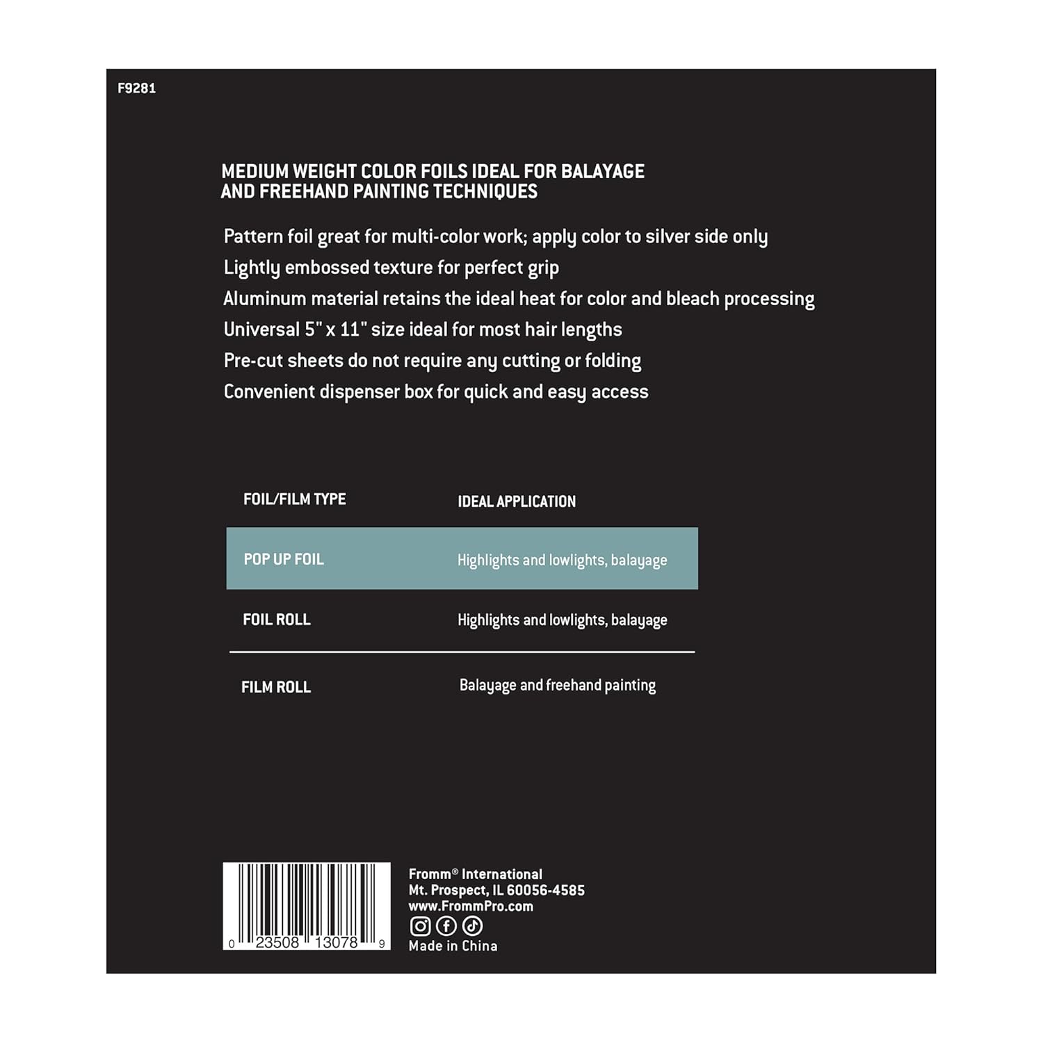 Fromm Color Studio Medium Weight Pop Up Hair Foil in Palms Leaves Pattern, 5" x 11" Embossed Aluminum Foil Sheets, Hair Foils for Highlighting and Coloring - 500 Foil Sheets
