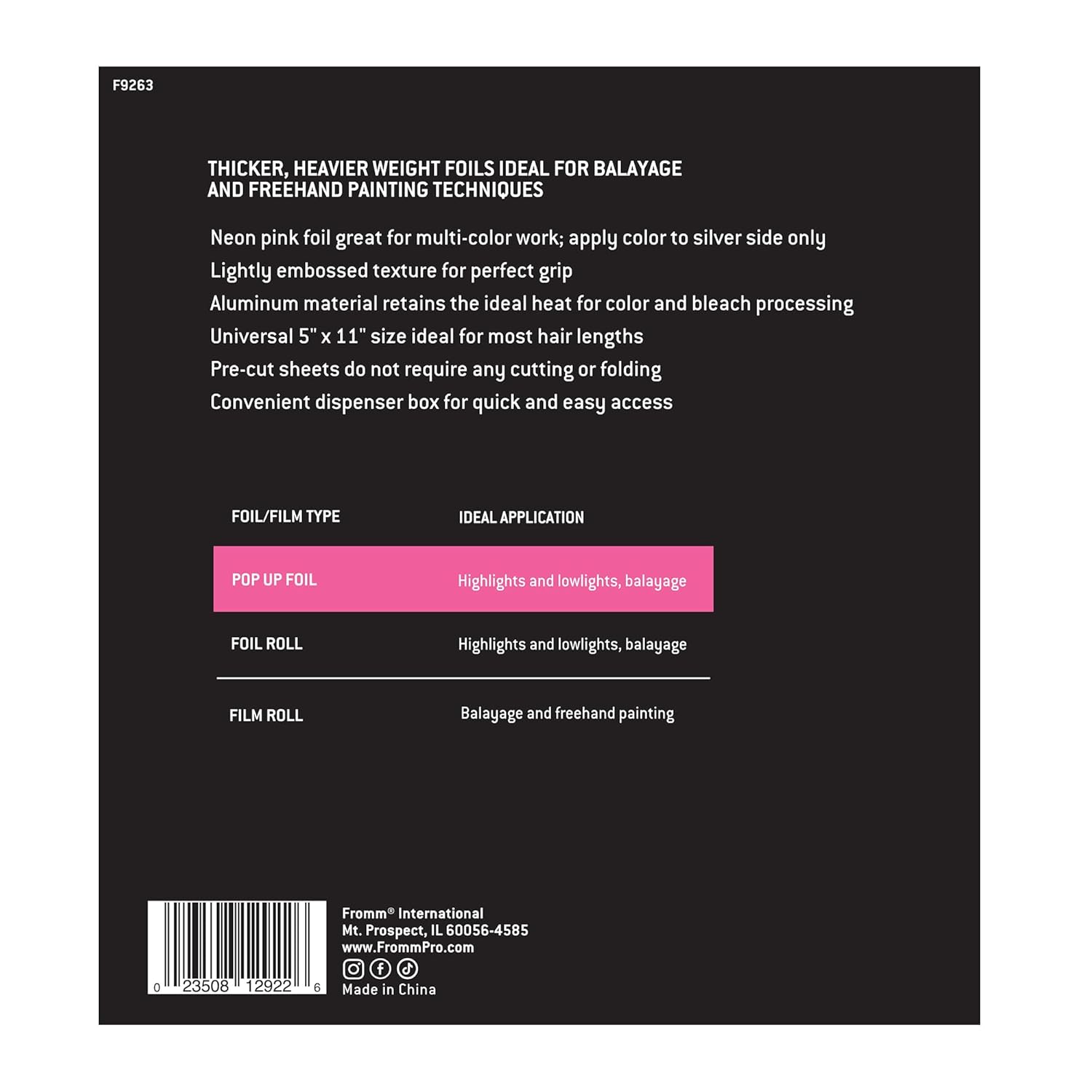 Fromm Color Studio Medium Weight Pop Up Hair Foil in Hot Pink, 5" x 11" Embossed Aluminum Foil Sheets, Hair Foils for Highlighting and Coloring - 500 Foil Sheets