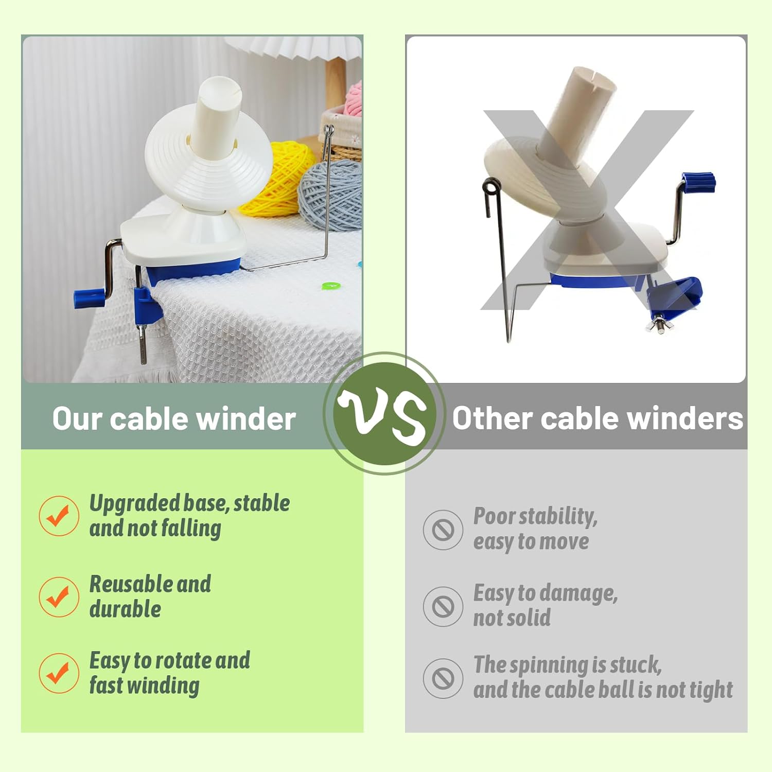 - Easy to Use and Install: The Yarn spinner can be used on all types of tables with a thickness of less than 2 inches. The crochet yarn winder comes with a detailed instruction manual and can be easily installed in just a few steps. Just place the machine on the table, tighten the knob to fix it, and shake the handle to wind the yarn into a complete ball
