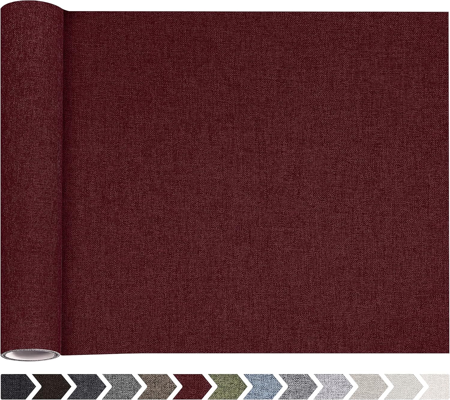 Fine Linen Fabric Patches, Self-Adhesive, Extra Large 12x40 Inch, Multi Color, for Sofa & Clothes Repair (Burgundy)
