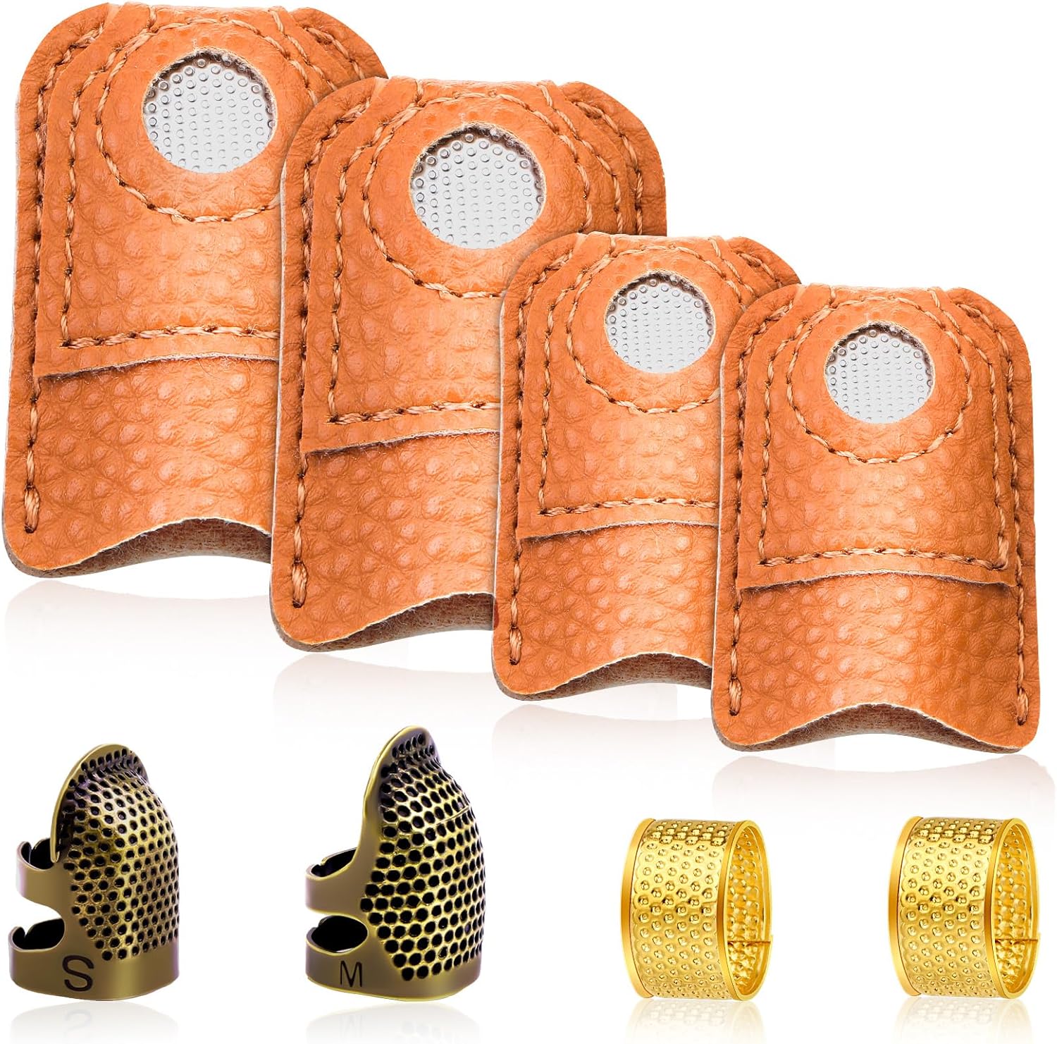 8 Pcs Hand-Working Sewing Thimble, Adjustable Metal Finger Protectors for Sewing, Leather Thimbles for Hand Quilting, Thimbles for Hand Sewing, Sewing Needles, Hand Embroidery Craft