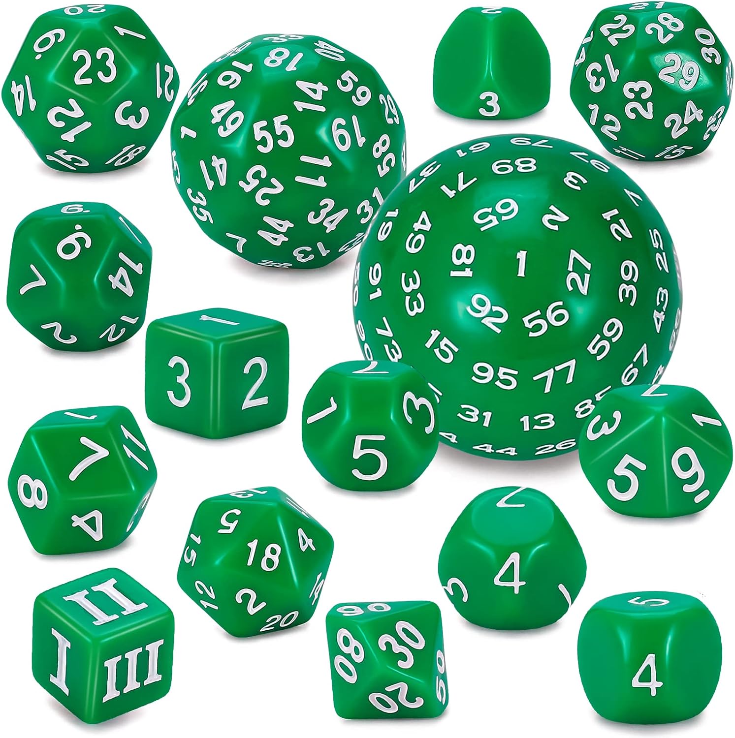 - Super dice set: DND Role Playing Dice (15pcs) from 4 sides to 100 sides, (contains D4,D5,D6,D7,D%,D8,D10,D12,D16,D20,D24,D30,D60 and D100) which can meet all your table game needs.