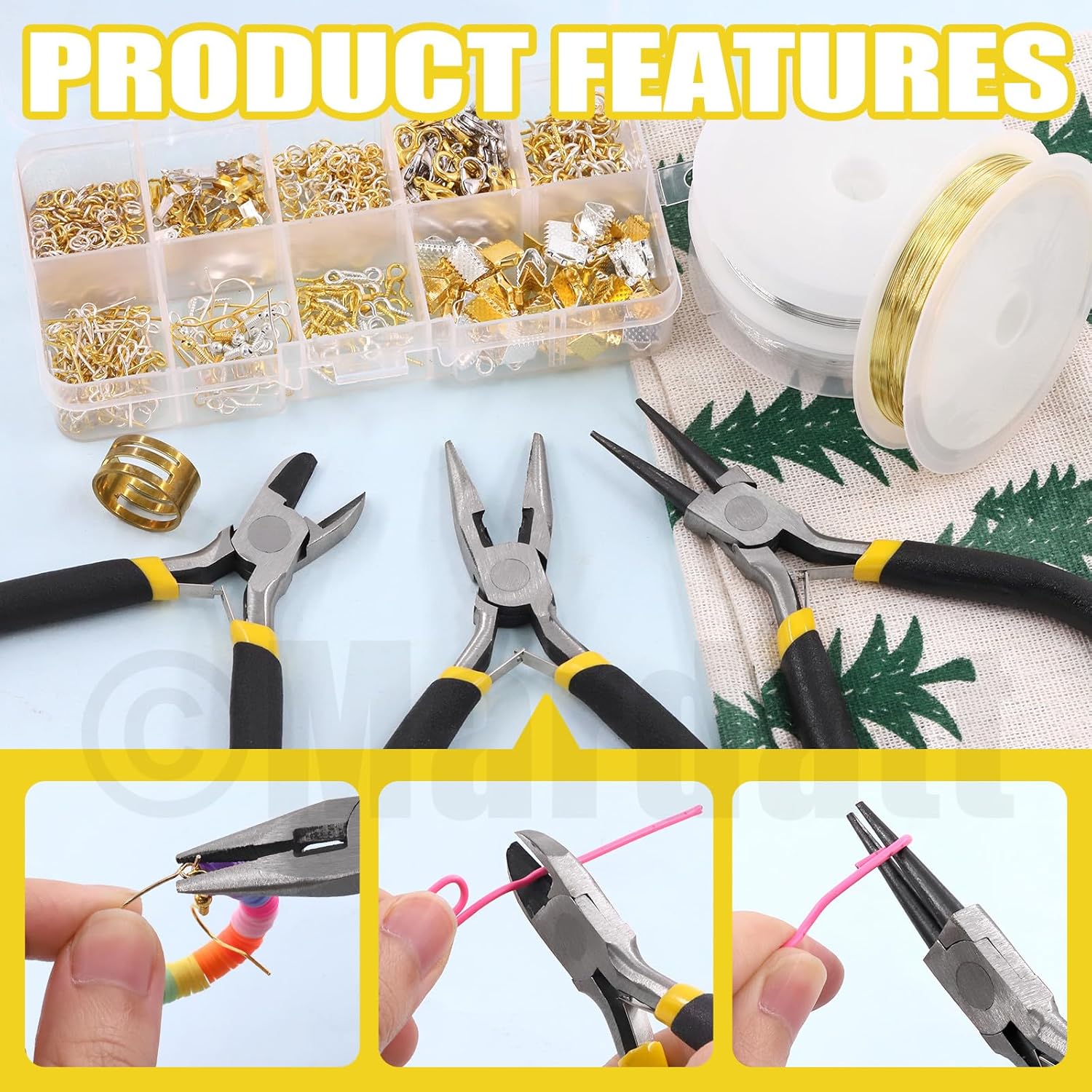 Mardatt 950Pcs Jewelry Making Supplies Kit - Includes Pliers, Wires, Jump Ring Opener, Tweezers, Awl & Accessories for Making & Repair