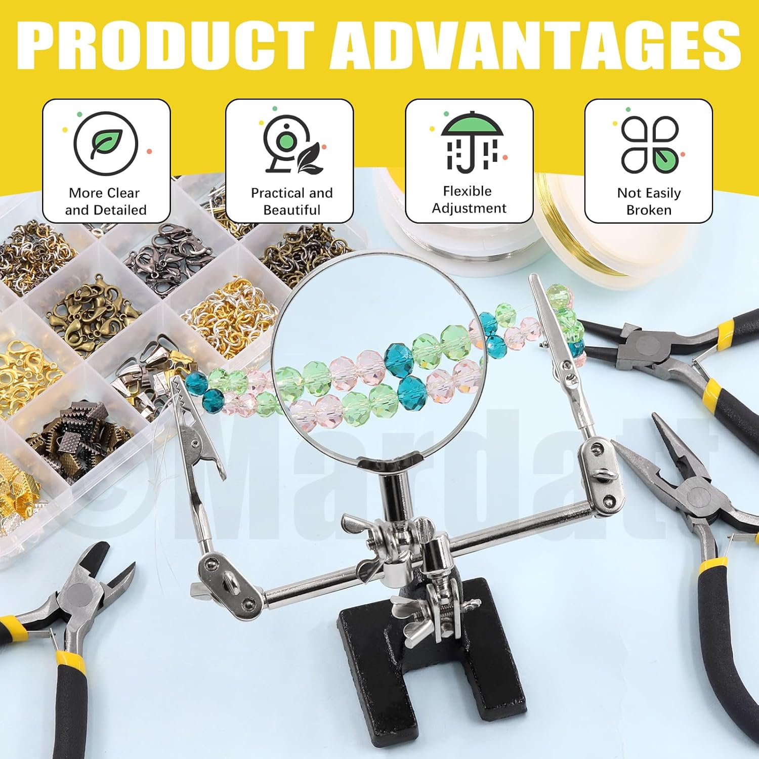 Mardatt 1488Pcs Jewelry Making Supplies Kit - Magnifying Glass, Pliers, Wires, Chain, Jump Ring Opener, Tweezers