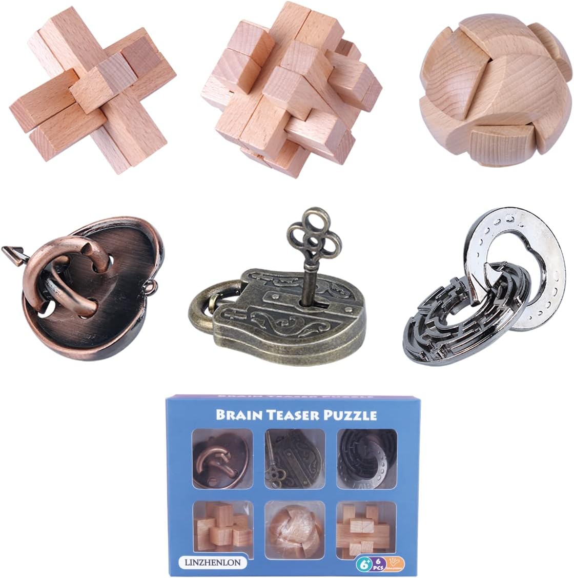 - Metal and Wood Brain Teaser 6 Set for Kids and Adults - All the coils and blocks are smooth and have NO SHARP EDGES for endless play without getting hurt. The links are made from heavy-duty 4.5 stainless steel as well as lightweight and durable beech wood that doesn’t easily bend or break even when thrown or stepped on. Players can’t force them open so there is no chance of cheating. It has also passed the ASTM F963 International Toy Safety Standards and guarantees it’s top-notch quality.