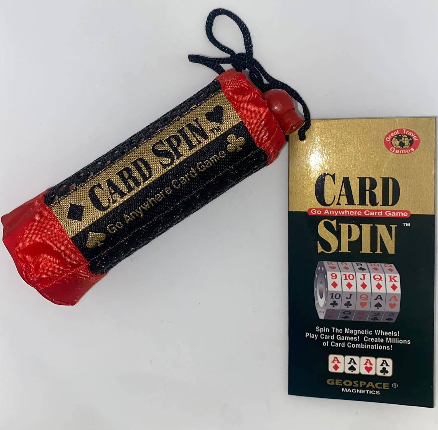 Geospace The Original Handheld Magnetic Spin Game, Take-Along Travel Edition with Storage Pouch (Card Spin)