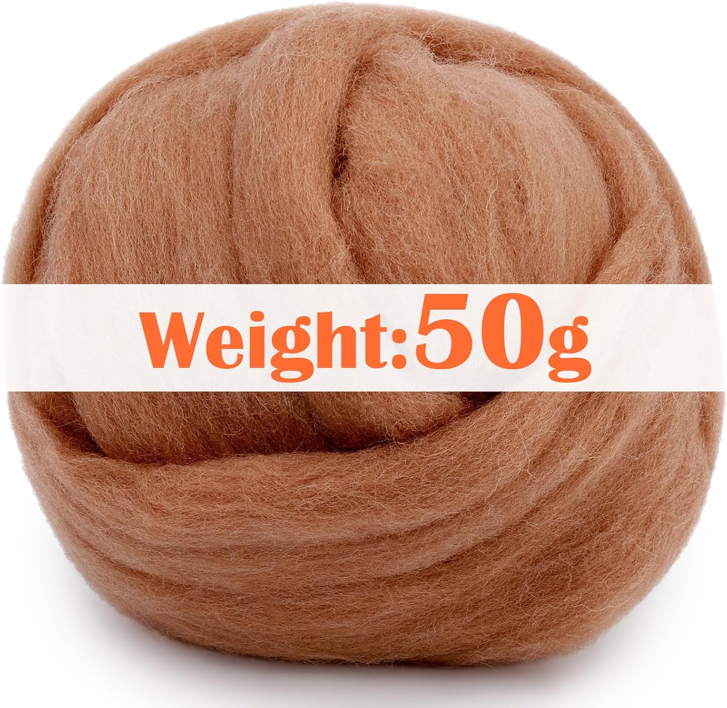 Mayboos Wool Roving Yarn, 1.76oz Colored Natural Wool Roving,Wool Felting Supplies Pure Wool Chunky Yarn for Wet Felting handcrafts and Spinning (Oak Brown)