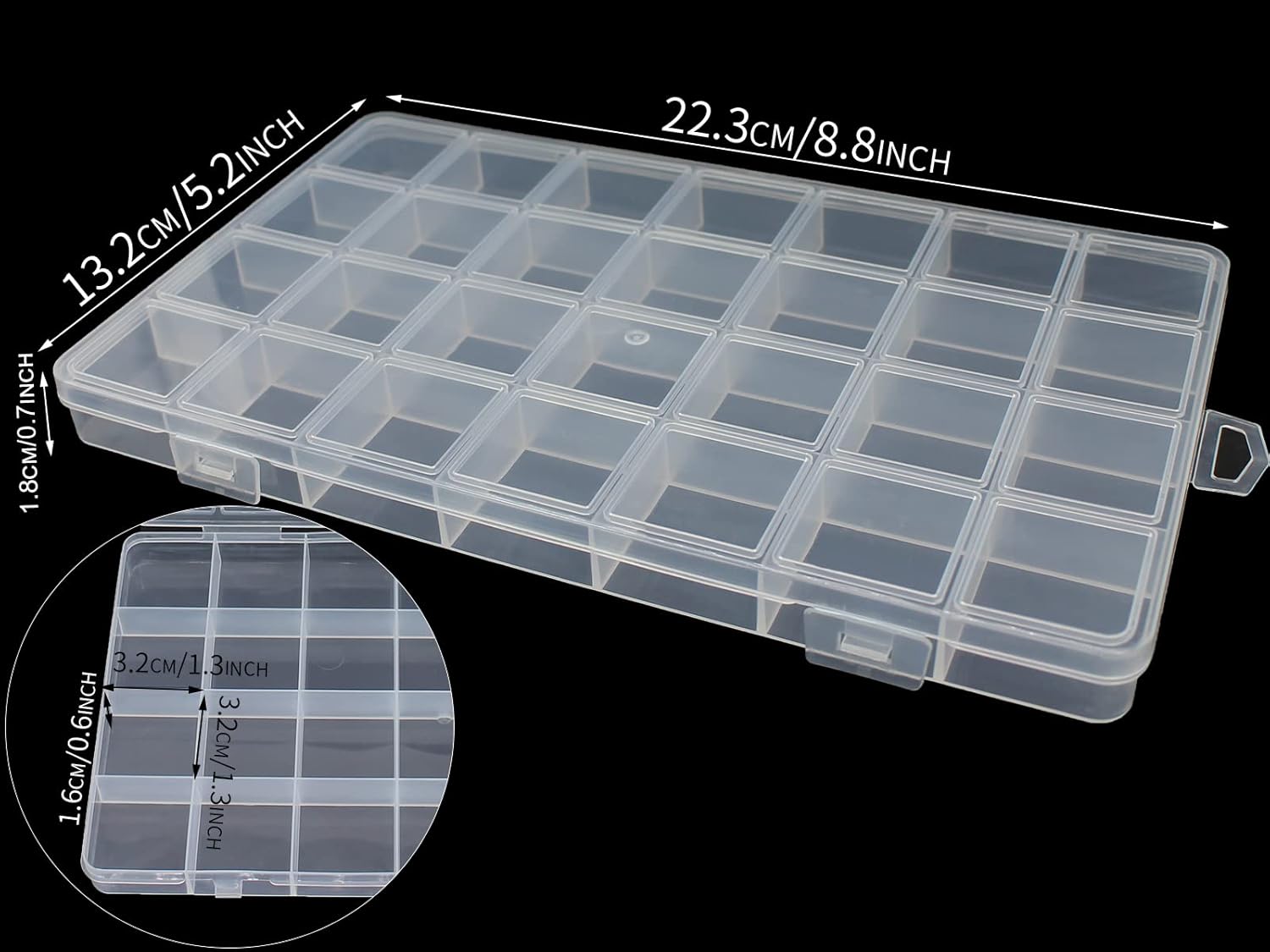 - MATERIAL & QUANTITY:These storage boxes are made of PP plastic, Each package include 4pcs 28 grid clear boxes. The craft storage box size is 8.6*5.2*0.7 inch