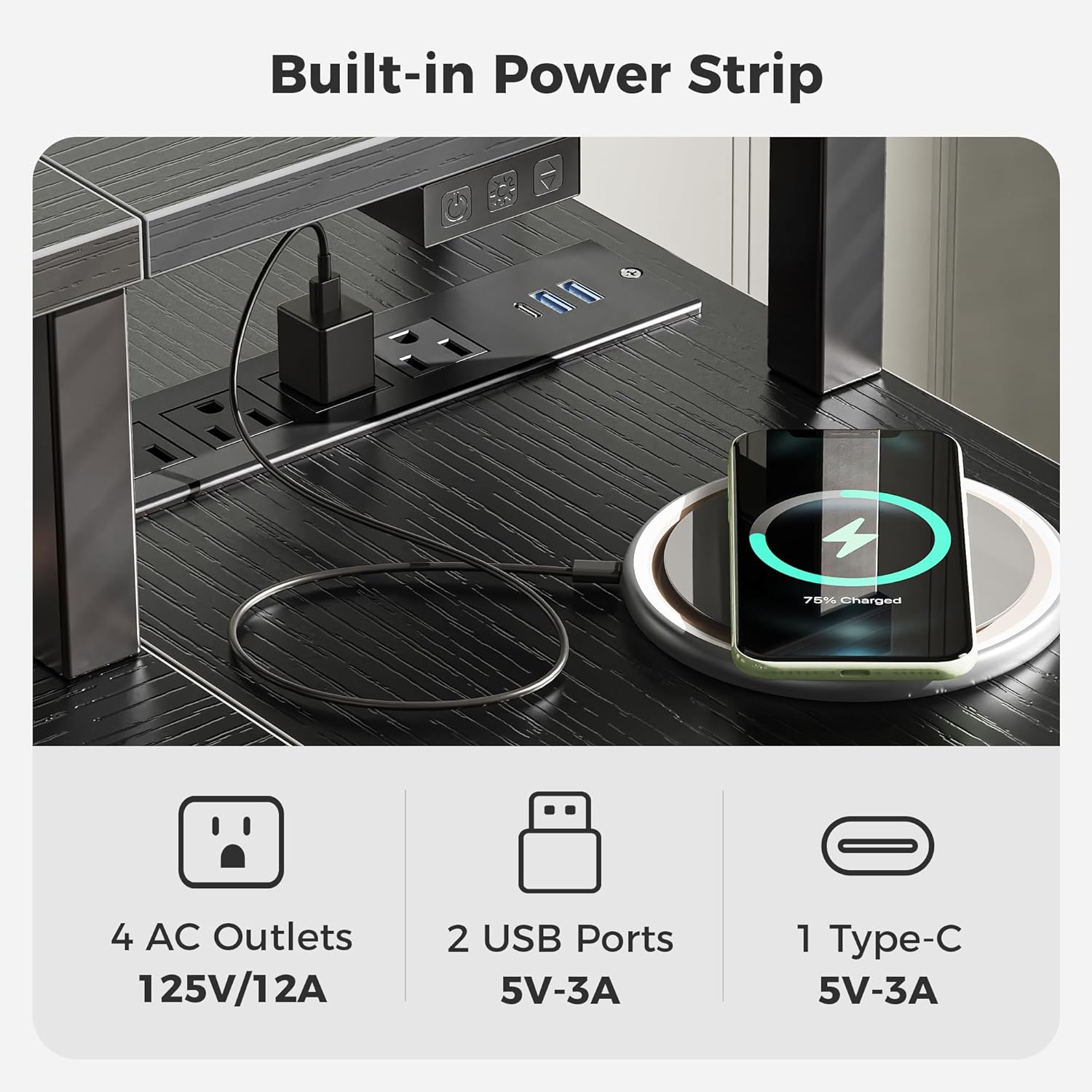 - ăPower Strips & Monitor ShelfăThis computer desk is equipped with 4 Standard Plug Outlets, 2 USB Ports, and 1 Type-C port, which can easily charge phones laptops, gaming gear and other office devices. Monitor stand on the desktop elevates your line of sight, allowing you to maintain proper sitting posture and protect your cervical and spinal health.