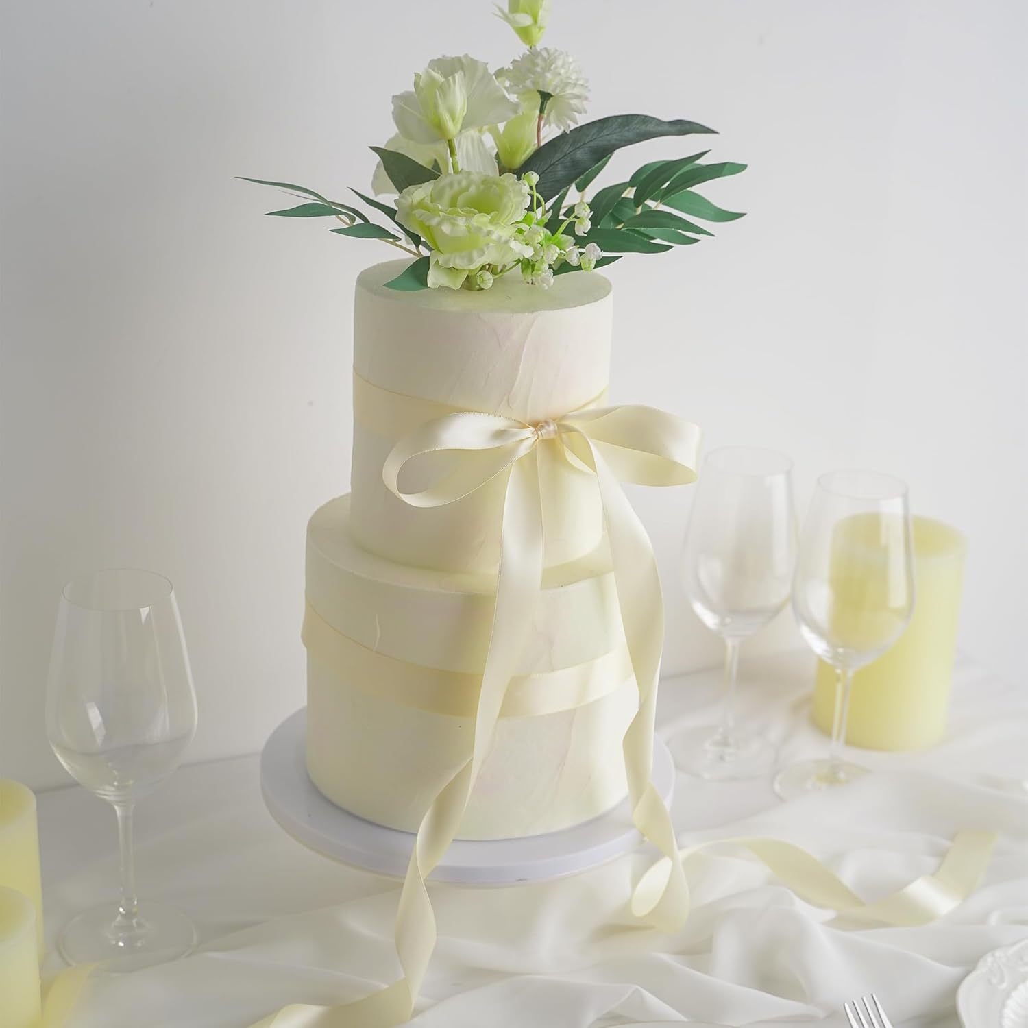HUIHUANG Cream Ribbon 1 inch x 50 Yards Ivory Double-Faced Polyester Silk Satin Ribbon for Gift Wrapping, Wedding Invitations, Hair, Bows Making, Holiday Decor, Floral Arrangement