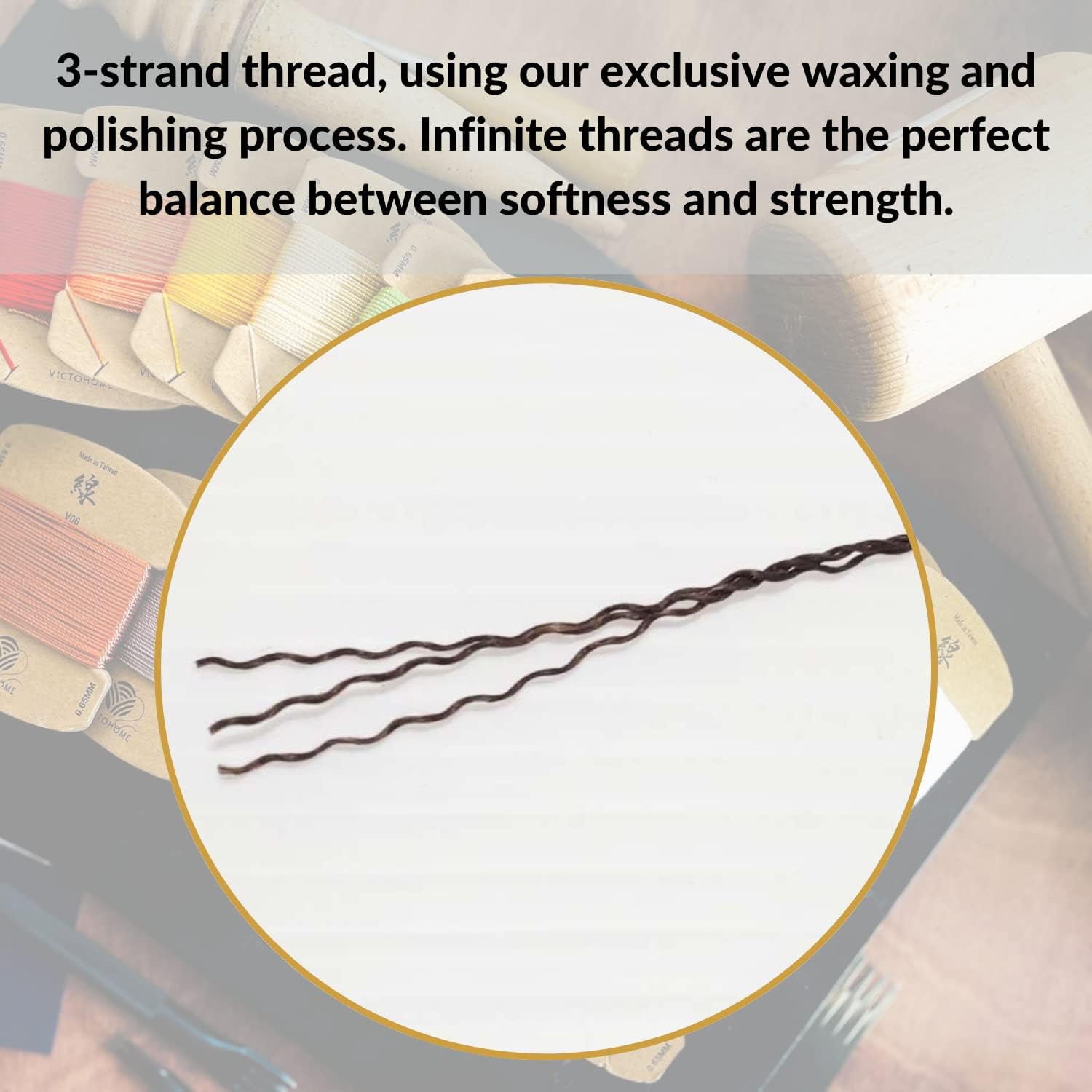- [BONDED THREAD] Our threads are manufactured in a 3-ply format. Bonded threads are coated with the American-produced DuPont resin to stick them together during the loop formation, for a better bond among the 3 cords. This ensures us that our threads are much less prone to unravel.