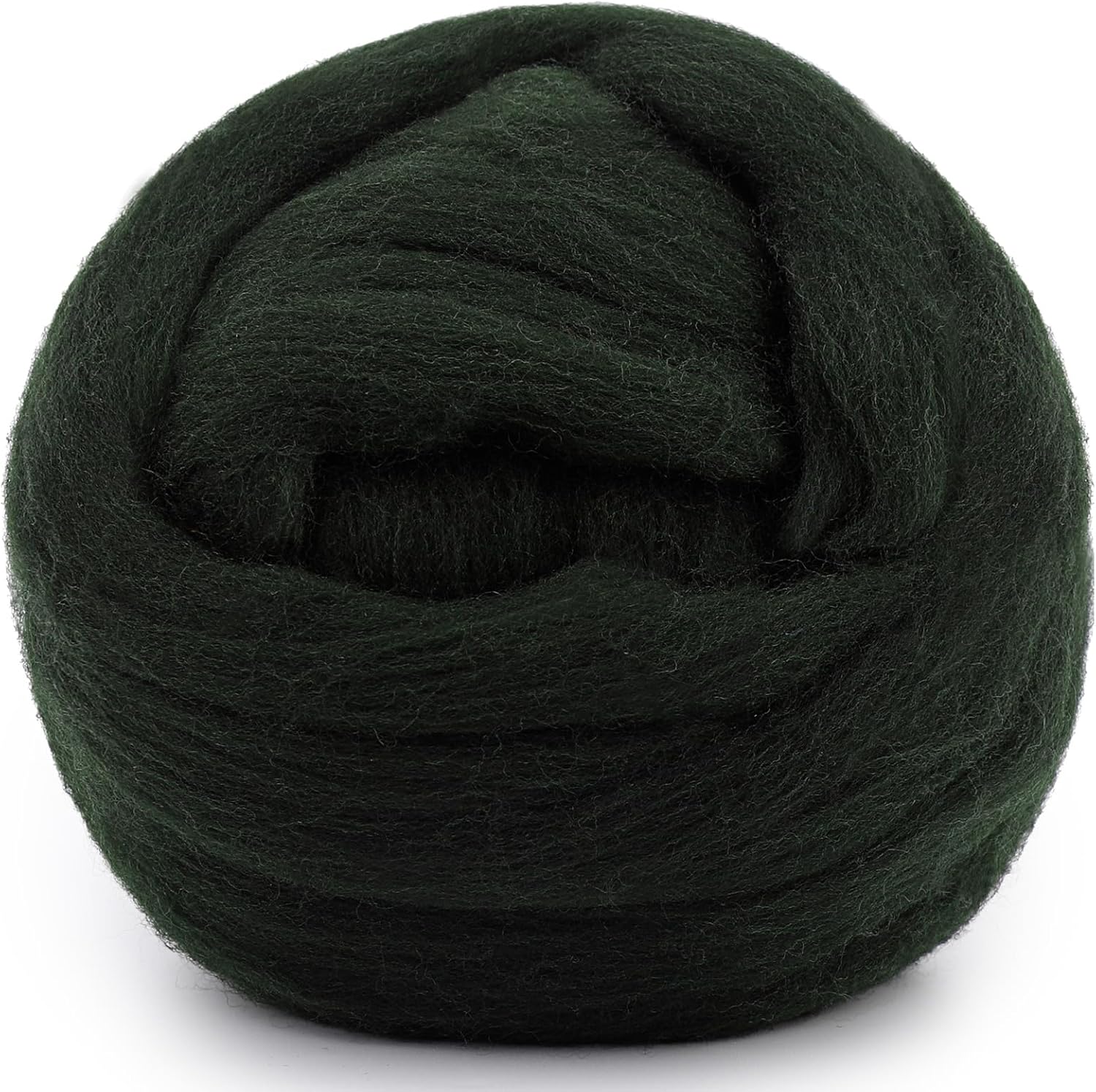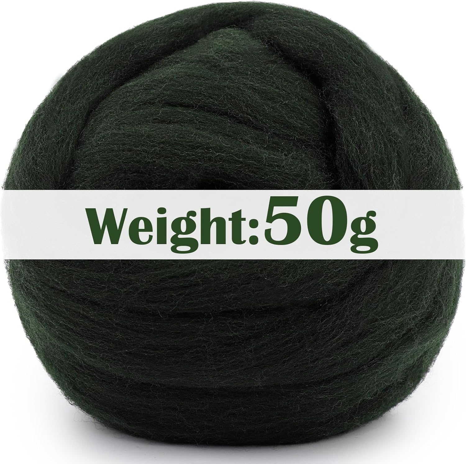 Mayboos Wool Roving Yarn, 1.76oz Colored Natural Wool Roving,Wool Felting Supplies Pure Wool Chunky Yarn for Wet Felting handcrafts and Spinning (Dark Green Color)