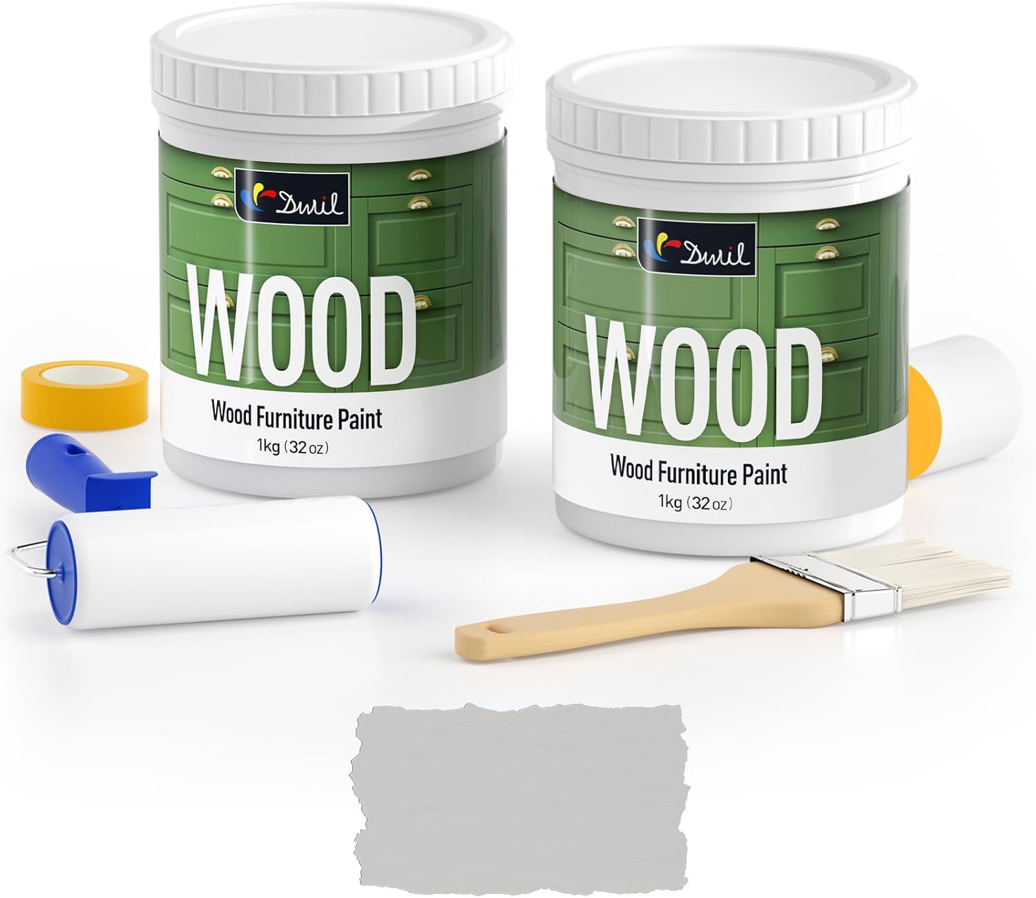 DWIL Matte Finish Furniture Paint - 64 Oz Wood Paint for Cabinets, Doors, Tables, and Dressers Refinishing - Water-Based, Non-Toxic & Odorless, Easy to Apply(Light Grey)-With Tools