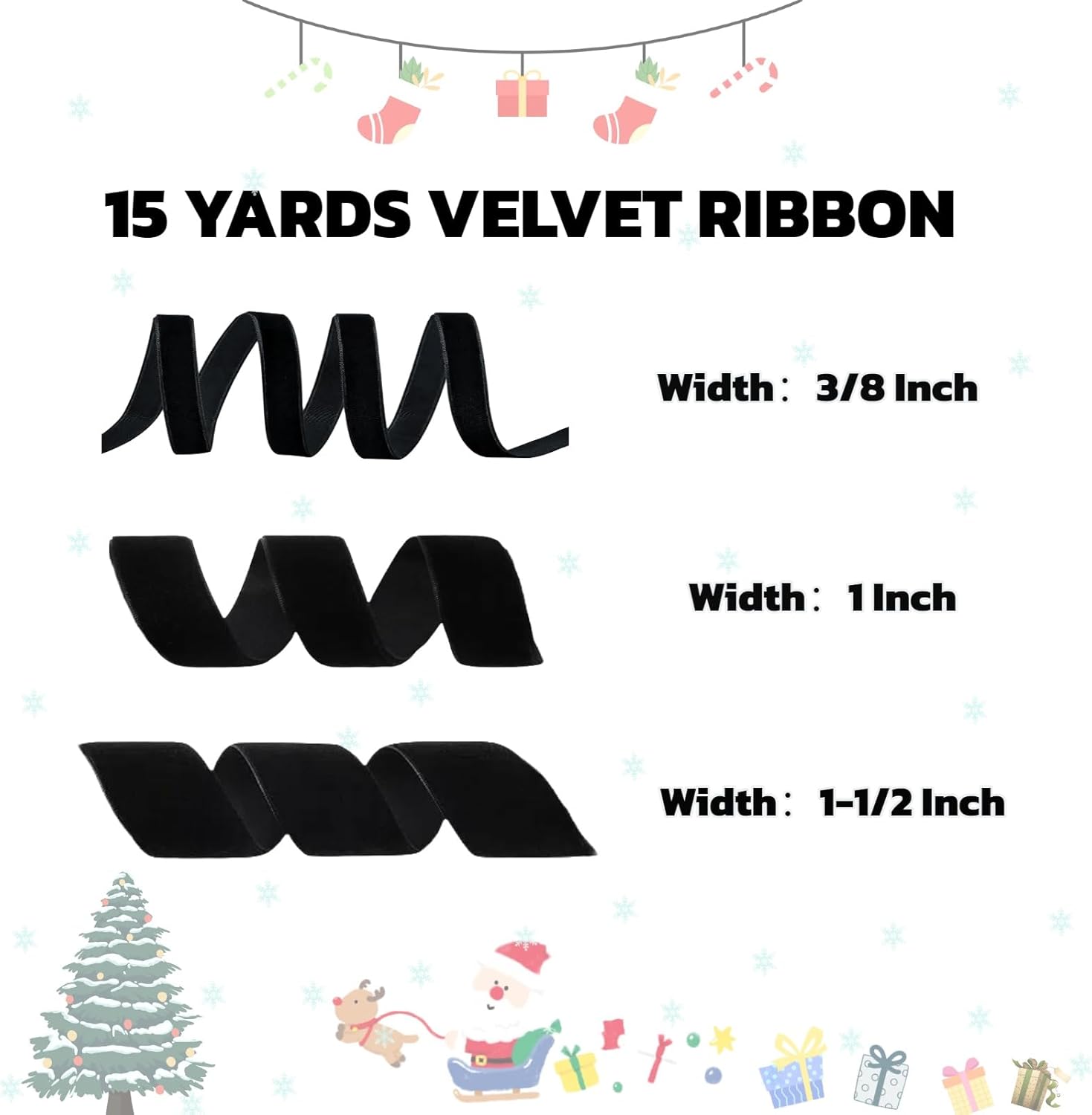 15 Yards Velvet Ribbon 1-1/2 Inch Single Face Black Velvet Ribbon Spool Prefect for Wedding, Ribbons for Gift Wrapping, Christmas Tree Ornaments Wreath Hair Bows, Ribbons for Crafts