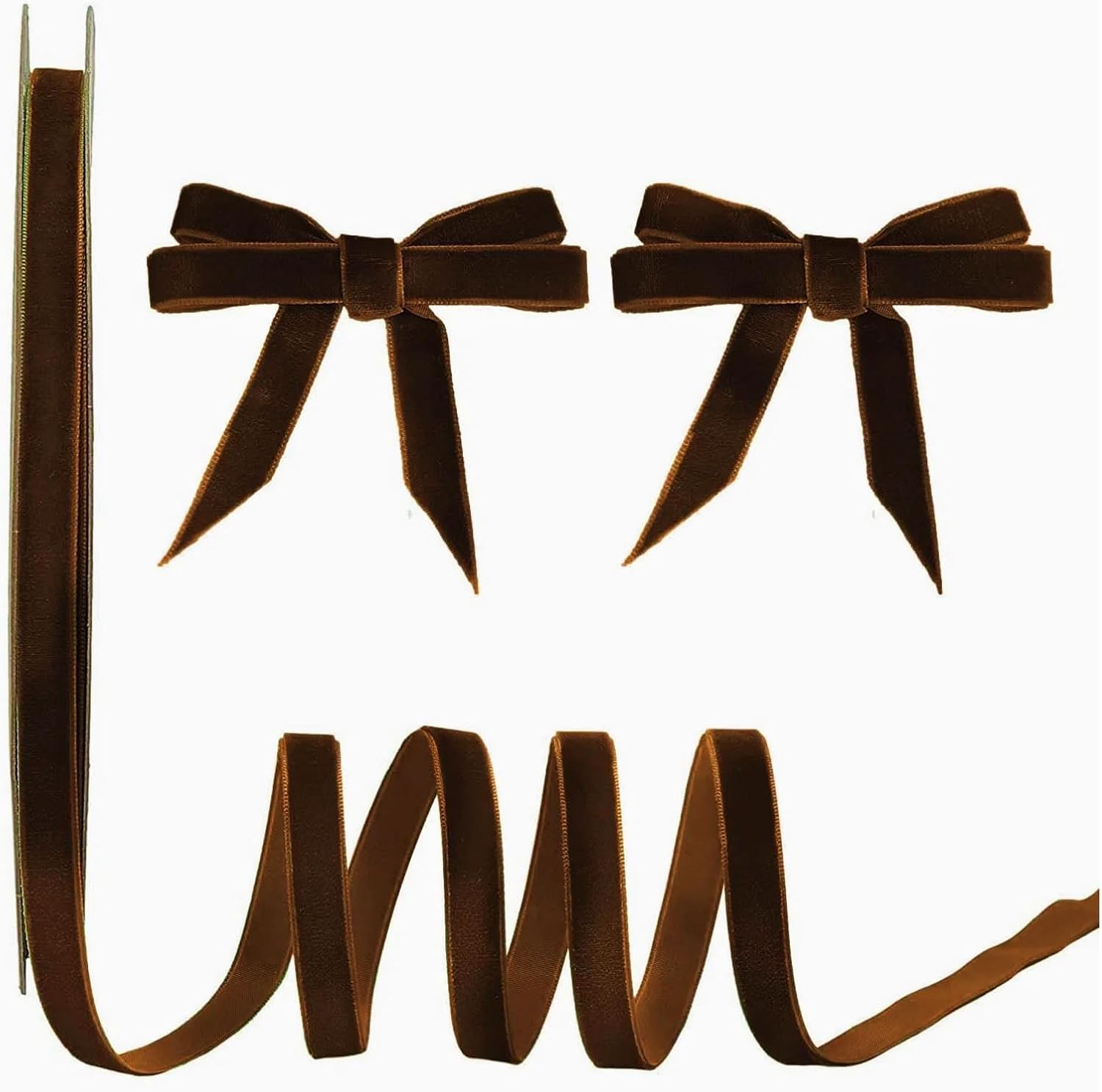15 Yards Velvet Ribbon 3/8 Inch Single Face Brown Velvet Ribbon Spool Prefect for Holiday Wedding, Ribbons for Gift Wrapping, Christmas Tree Ornaments Wreath Hair Bows, Ribbons for Crafts