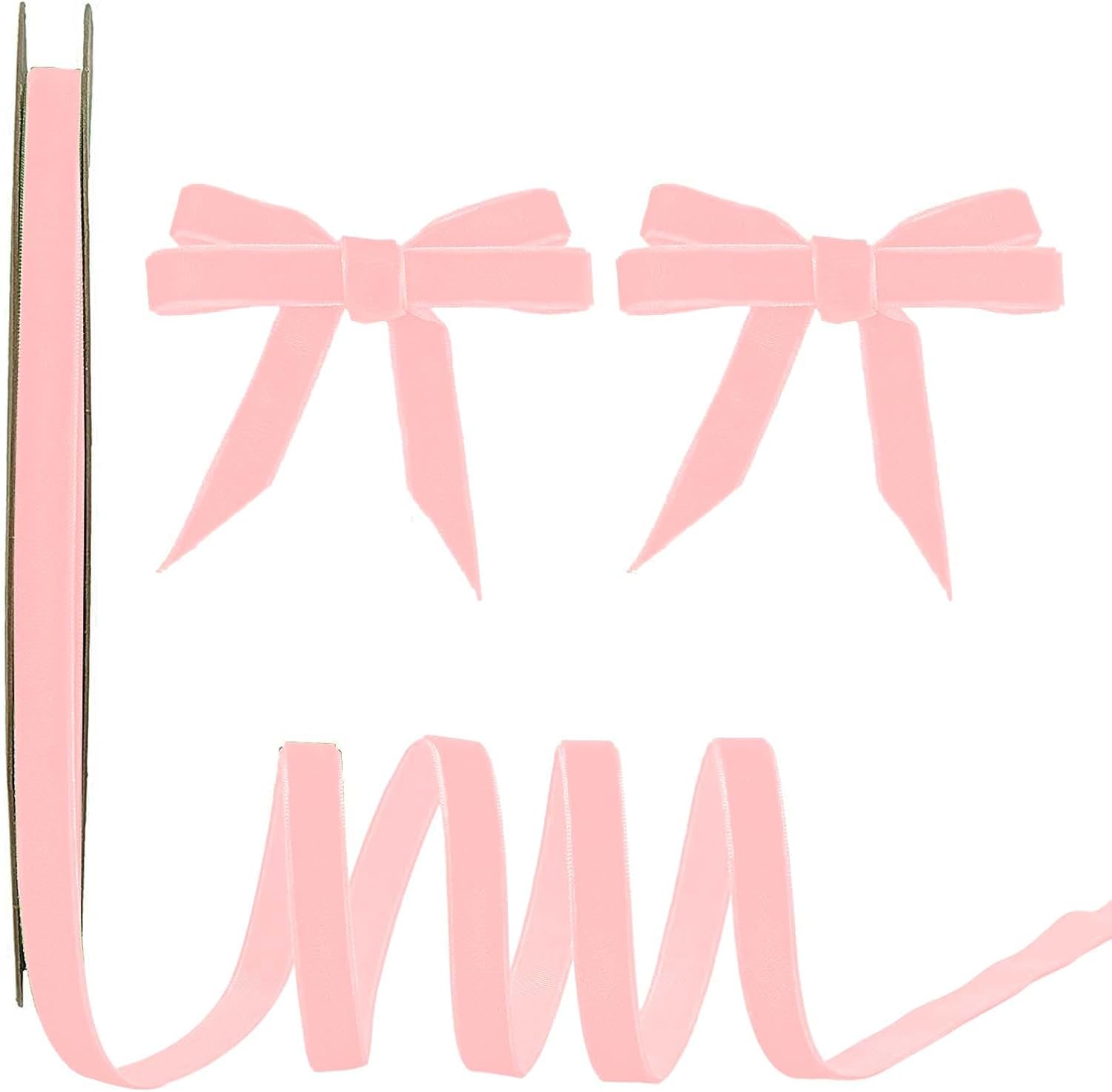 15 Yards Velvet Ribbon 3/8 Inch Single Face Pink Velvet Ribbon Spool Prefect for Holiday Wedding, Ribbons for Gift Wrapping, Christmas Tree Ornaments Wreath Hair Bows, Ribbons for Crafts