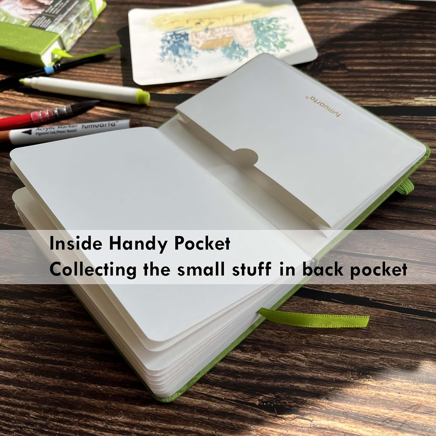 tumuarta Watercolor Sketchbook, 5x7.5, 140 LB, 300 GSM, 100% Cotton Paper, Cold Press, 24 Sheets, 48 Pages, Watercolor Journal for Use As Travel Sketch Book and Mixed Media Pad On The Go.5x7.5 Green