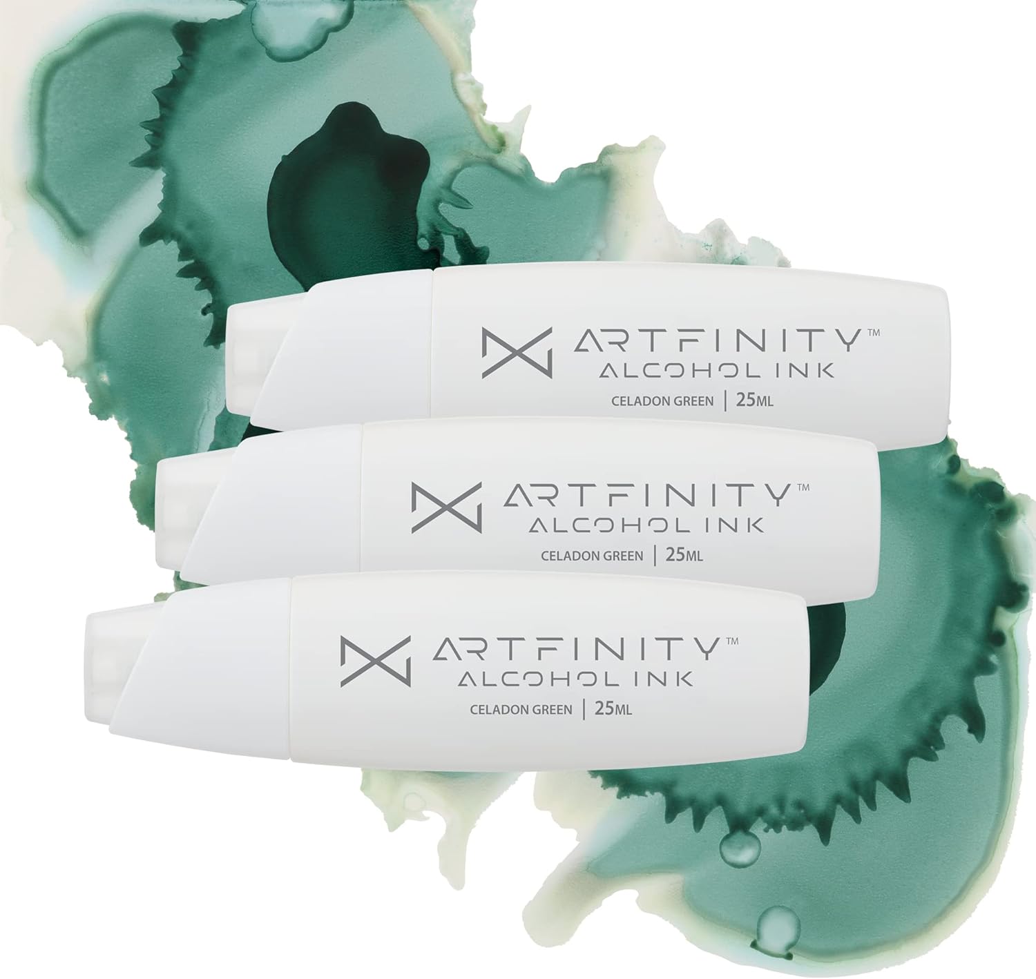 Alcohol Inks 3 Pack - Vibrant, Professional, Dye-Based Alcohol Inks for Artfinity Alcohol Markers, Artists, Drawing, & More! - Celadon Green BG6-4
