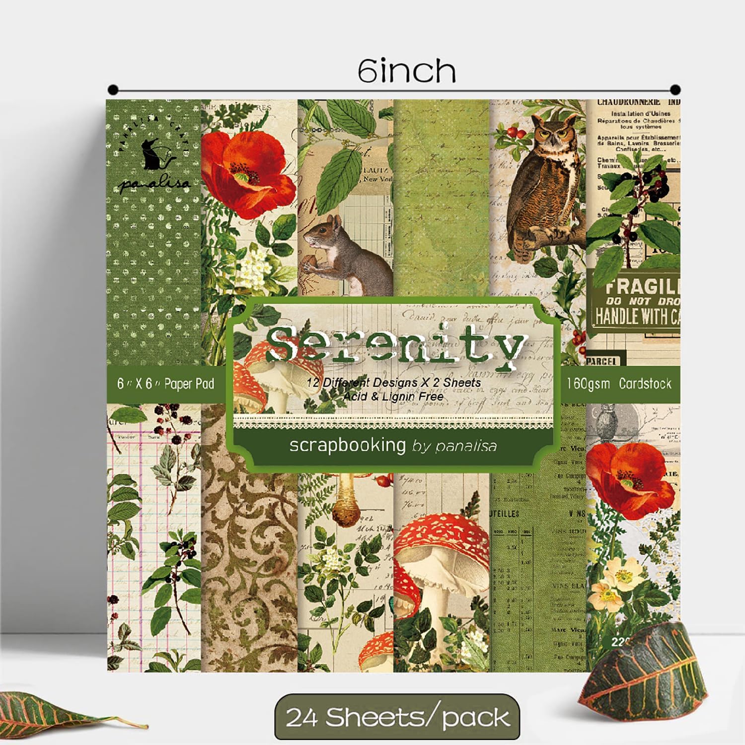 YASMEN Scrapbook Paper Pad 6x6, Vintage Patterned Cardstock, Single-Sided Decopodge, DIY Decorative Craft Paper, Scrapbooking Junk Journal Gift Card Making Supplies - 24 Sheets