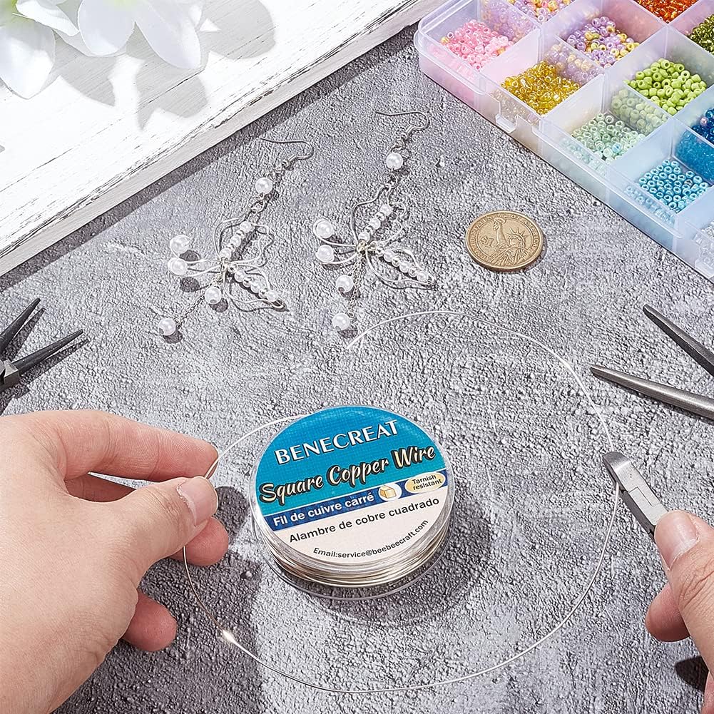 BENECREAT 32.81 Feet 24 Gauge Silver Square Copper Wire, Craft Copper Wire Tarnish Resistant Jewelry Material for Jewelry Making