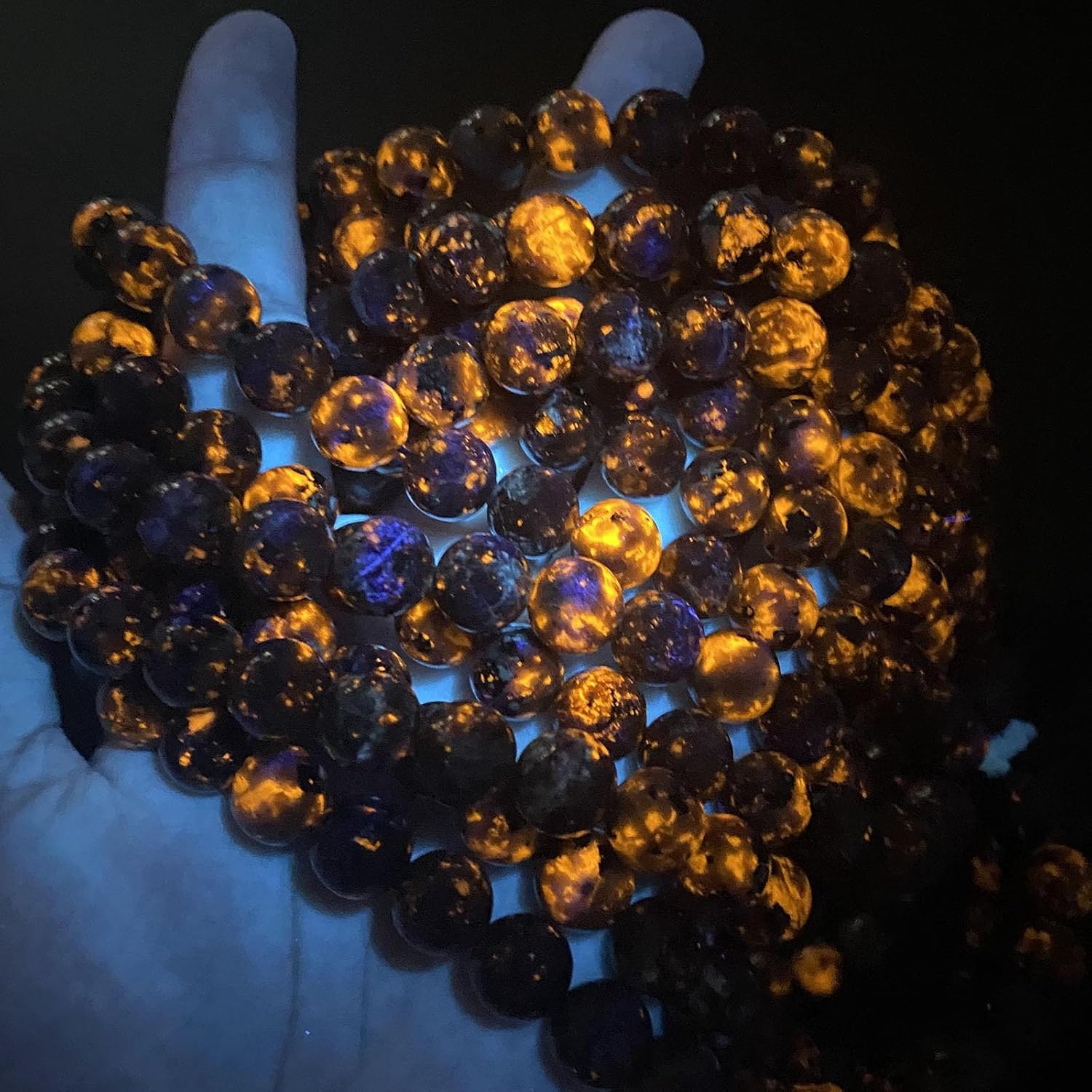- 【Material】:Genuine Natural Flame Yooperlite Gemstones , It will glow under the irradiation of UV LAMP..Round Loose Stone Beads,Energy Stone Healing Power,Help activate the mind.