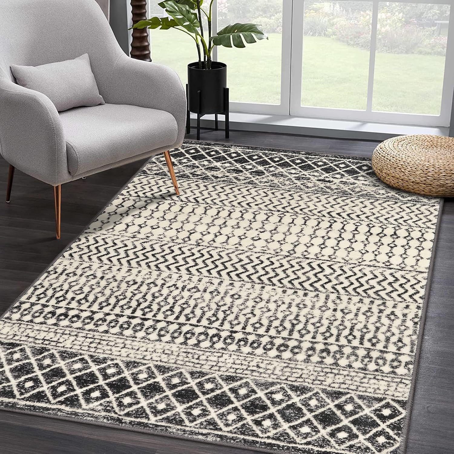 - Easy to Clean Washable Rug: The black rug for living room is easy to care for and washable, Keep your rug looking fresh with daily cleaning using a vacuum.For a deeper clean, simply toss in the washing machine on a gentle cycle with cold water , air dry and not need add bleach