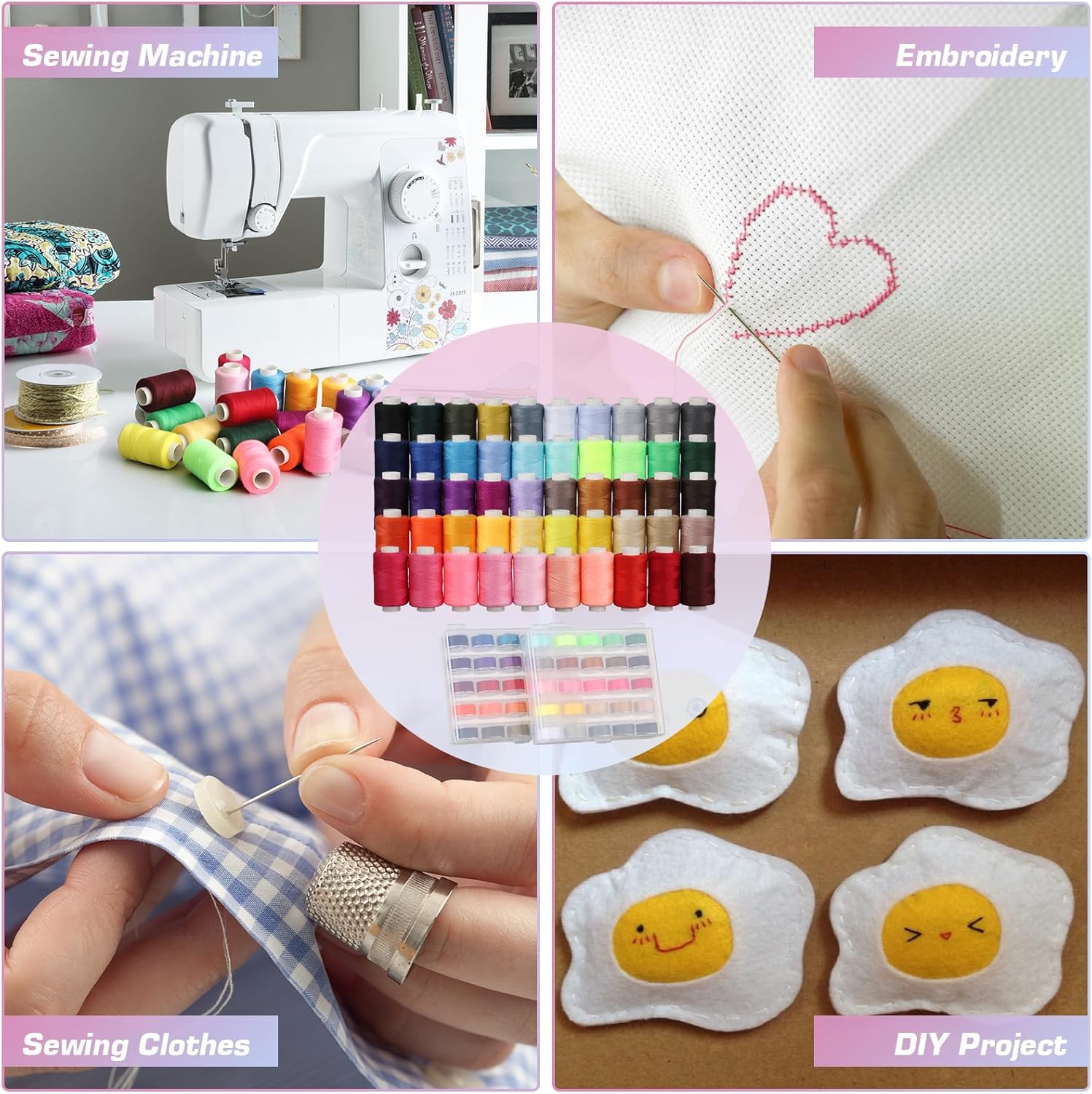 - Efficiently Sewing Thread Kit: Sewing threads kit including 50pcs different colors sewing thread spools, 50pcs different colors prewound bobbins with cases. Works well for a variety of sewing projects