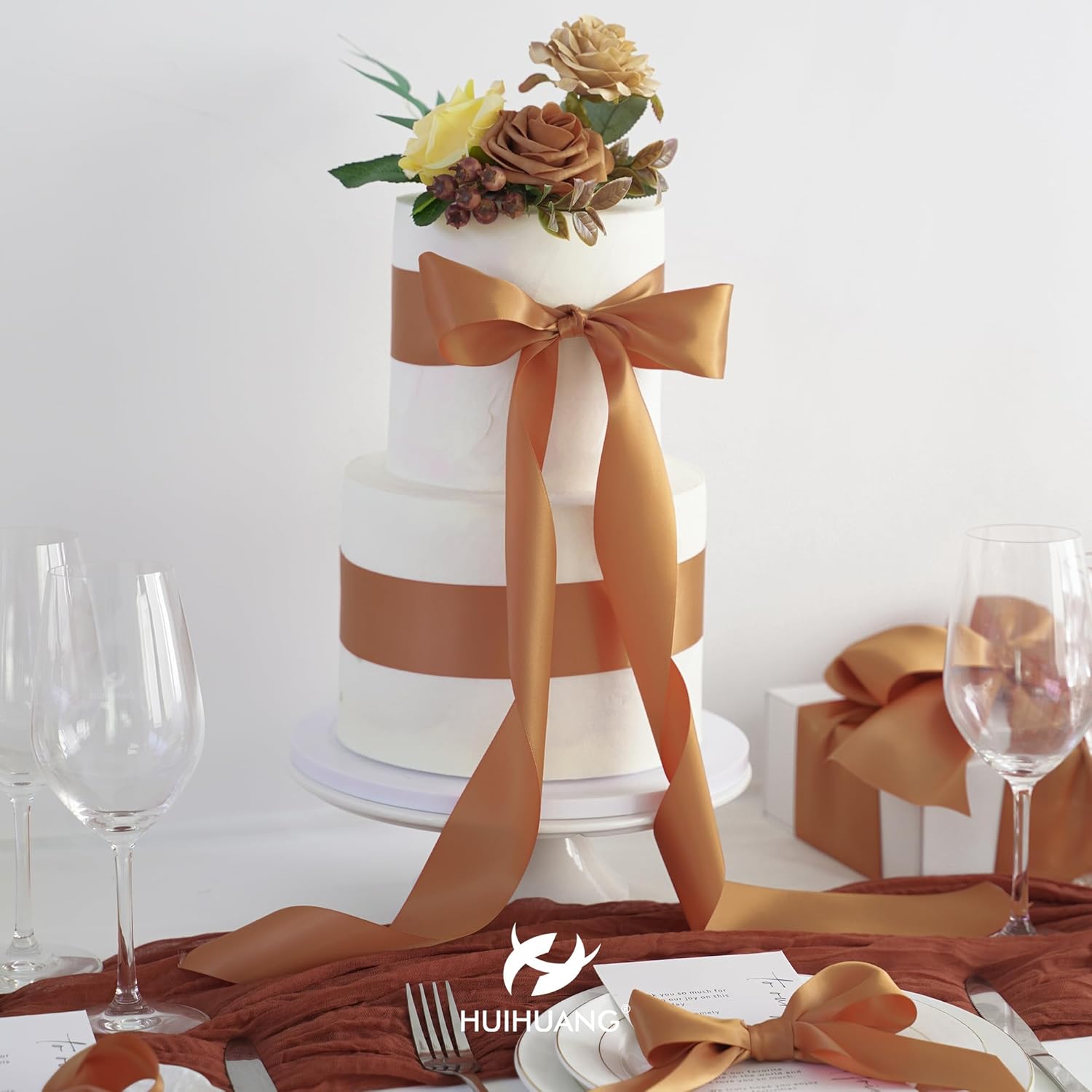 HUIHUANG Terracotta Ribbon 2 inch Wide Double-Faced Terracotta Satin Silk Ribbon for Flower Bouquet Wrap, Gift Wrapping, Fall Wedding Decor, Crafts and Bows Making- 25 Yards/Roll