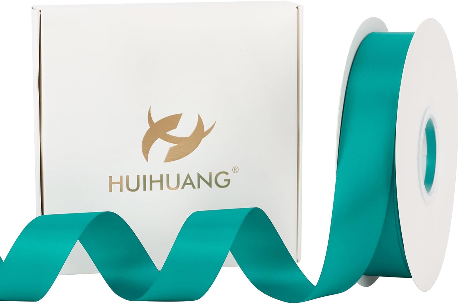 HUIHUANG Teal Blue Ribbon 1 inch x 50 Yards Double-Faced Satin Teal Ribbon for Gift Wrapping, Flower Bouquet, Invitations, Christmas Holiday Decor, Hairs, Bows Making