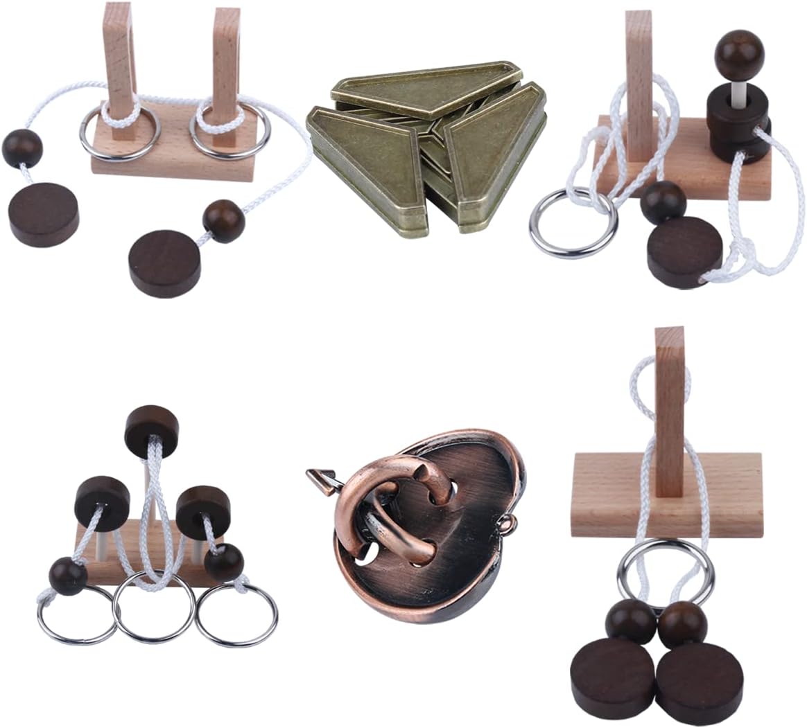 Wooden and Metal 3D Unlock Interlock Assorted Brain Teasers Puzzles,IQ Logic Training Family Game Party Favor Coffee Table Time Unlock Interlock Mind Puzzles Box