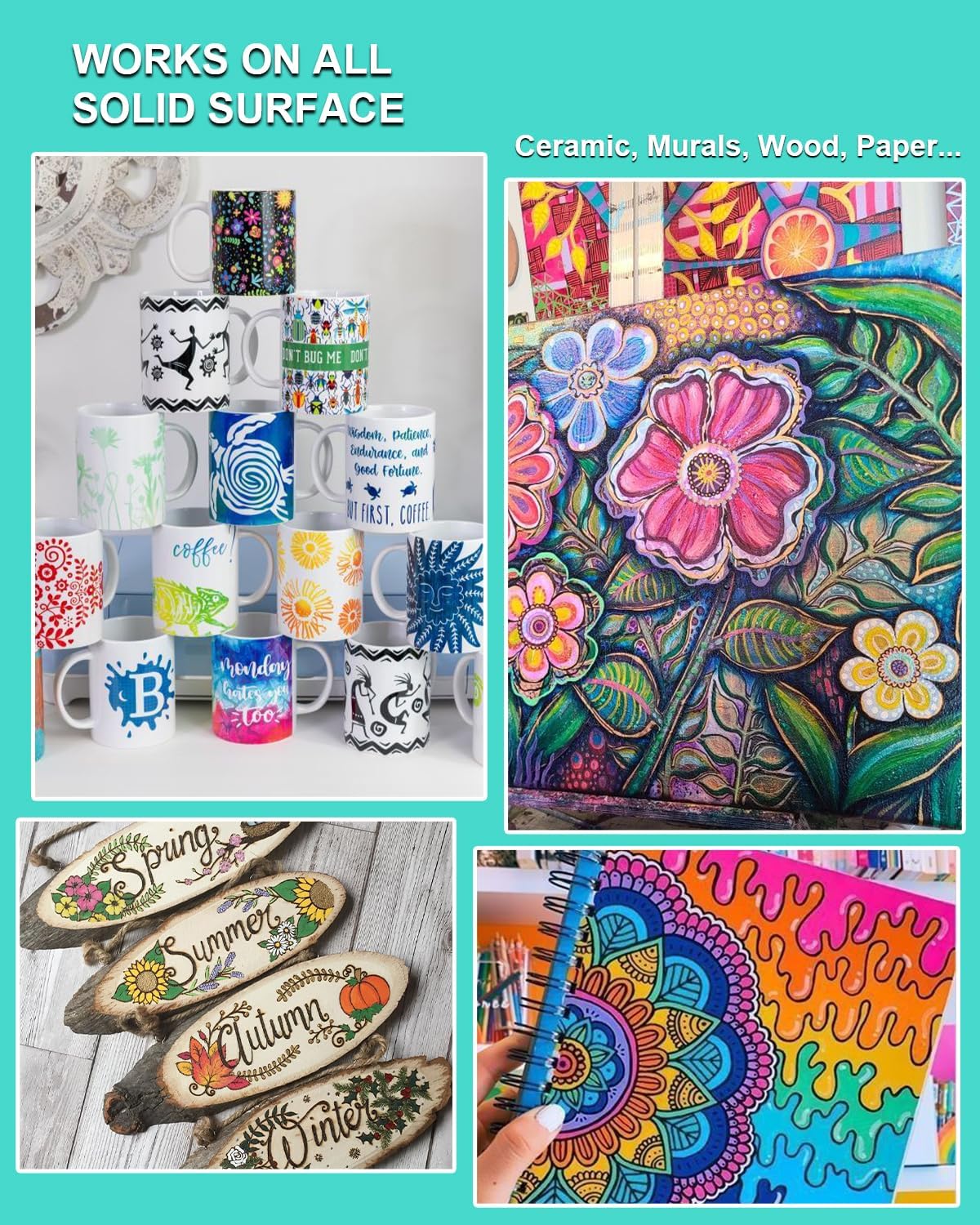- Works on Multiple Surfaces: These acrylic paint pens are perfect for use on a variety of surfaces like Tagging, Rock, paper, glass, metal, wood, plastic, stone, leather, canvas, textiles, and more. Unleash your creativity and transform any surface into your canvas with our 15mm Acrylic poster Markers.