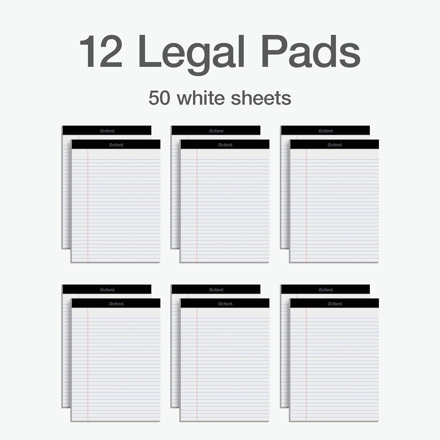 Oxford 8.5 x 11.75 Legal Pads, 12 Pack, Wide Ruled, White Paper, 50 Sheets Per Writing Pad, Made in the USA (74030)