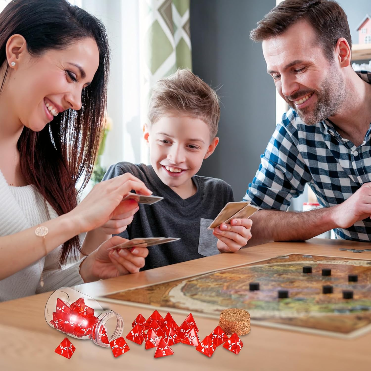 Wettarn 120 Pcs Transparent Red D4 Dice6 Pcs Pot Bottles Plastic Favor Jars with Cork Lids Healing Potion Bottles Polyhedral Dice Set for Party Favors Table Games(Novel Style)
