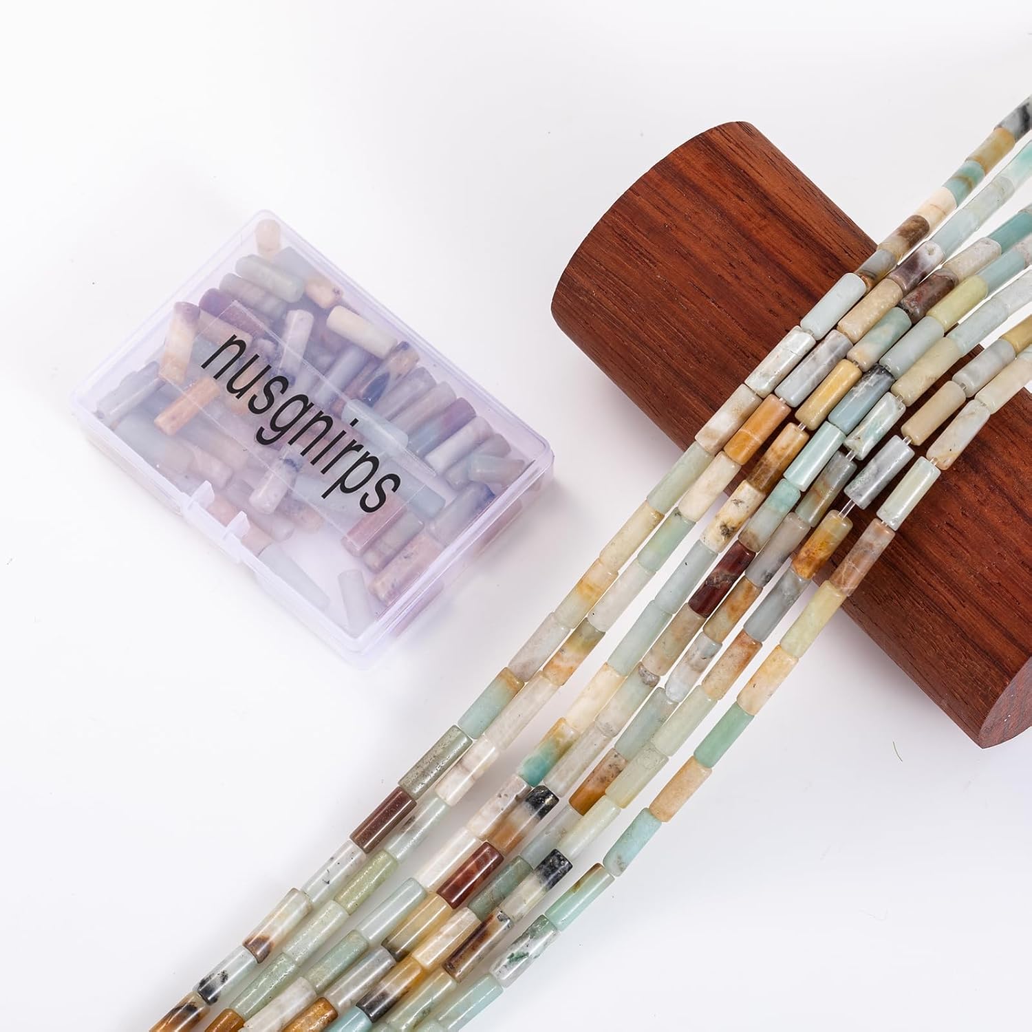 Natural Amazonite Cylinder Tube Beads 4x13mm 38cm/str Loose Semi Gemstone Stone Beads for Making Bracelets Necklace Earrings