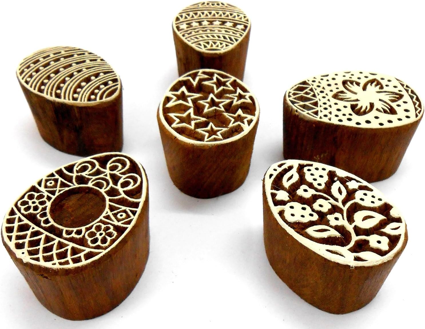CraftsofIndia® Egg/Oval Wooden Blocks for Stamping, Block Printing on Textiles, Pottery Crafts,Henna, Scrapbooking, Wall Painting (Set of 6)