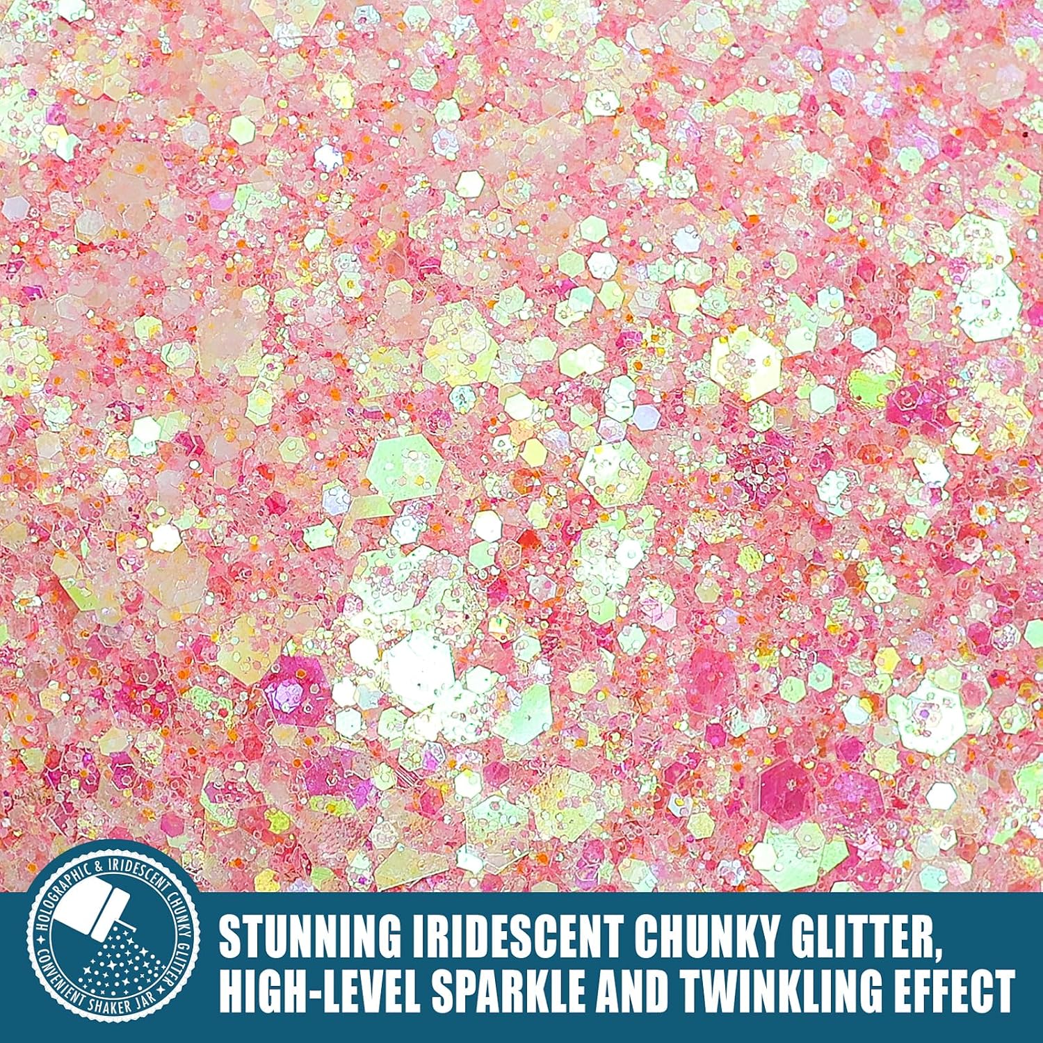 Iridescent Chunky Glitter 5.64oz/160g, Ultra Fine Glitter Powder Mixed Chunky PET Flakes Sequins for Resin Epoxy Craft Arts, Tumbler, Cosmetic Glitter for Body Nail Hair Eye Party Festival (Baby Pink)