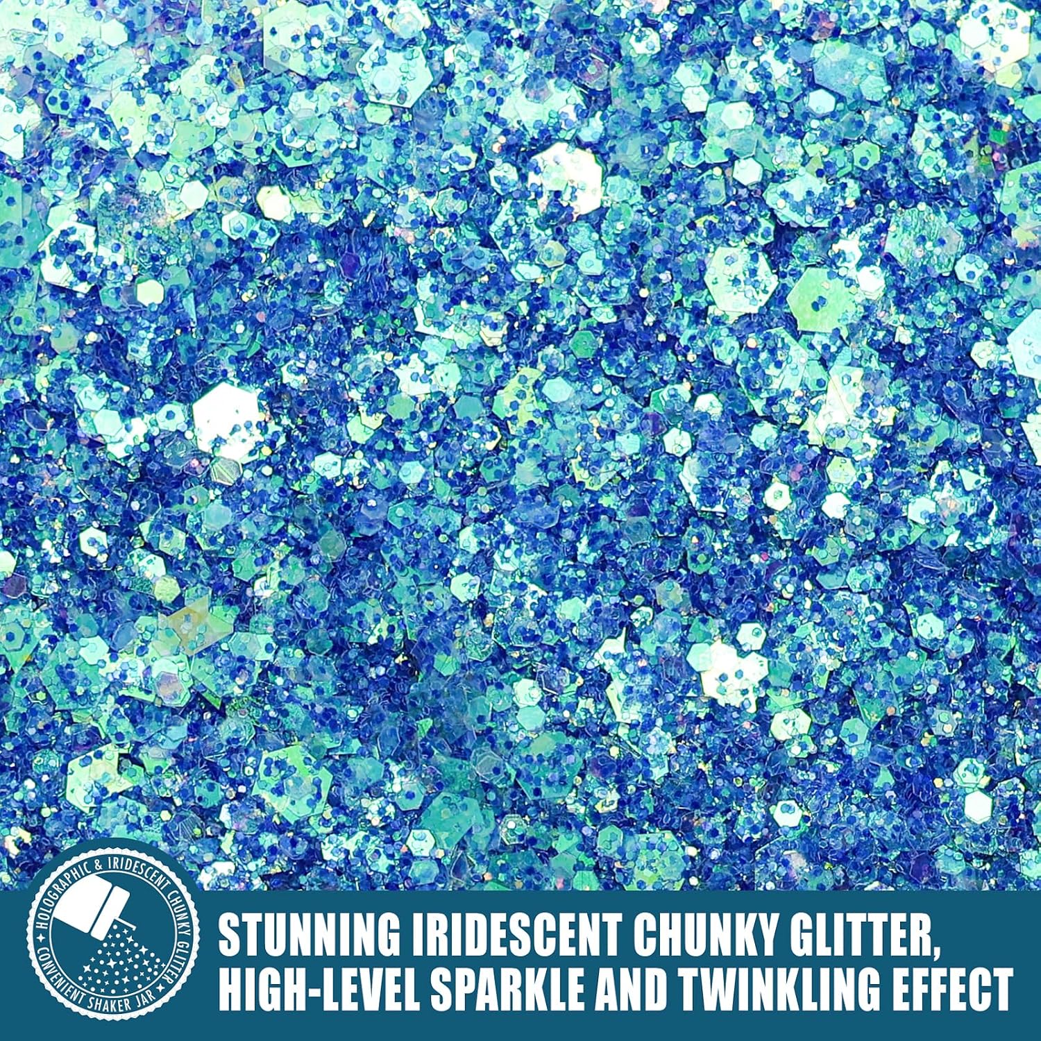 Iridescent Chunky Glitter 5.64oz/160g, Ultra Fine Glitter Powder Mixed Chunky PET Flakes Sequins for Resin Epoxy Craft Arts, Tumbler Nail Hair Eye Party Festival Decor (Fantasy Blue)