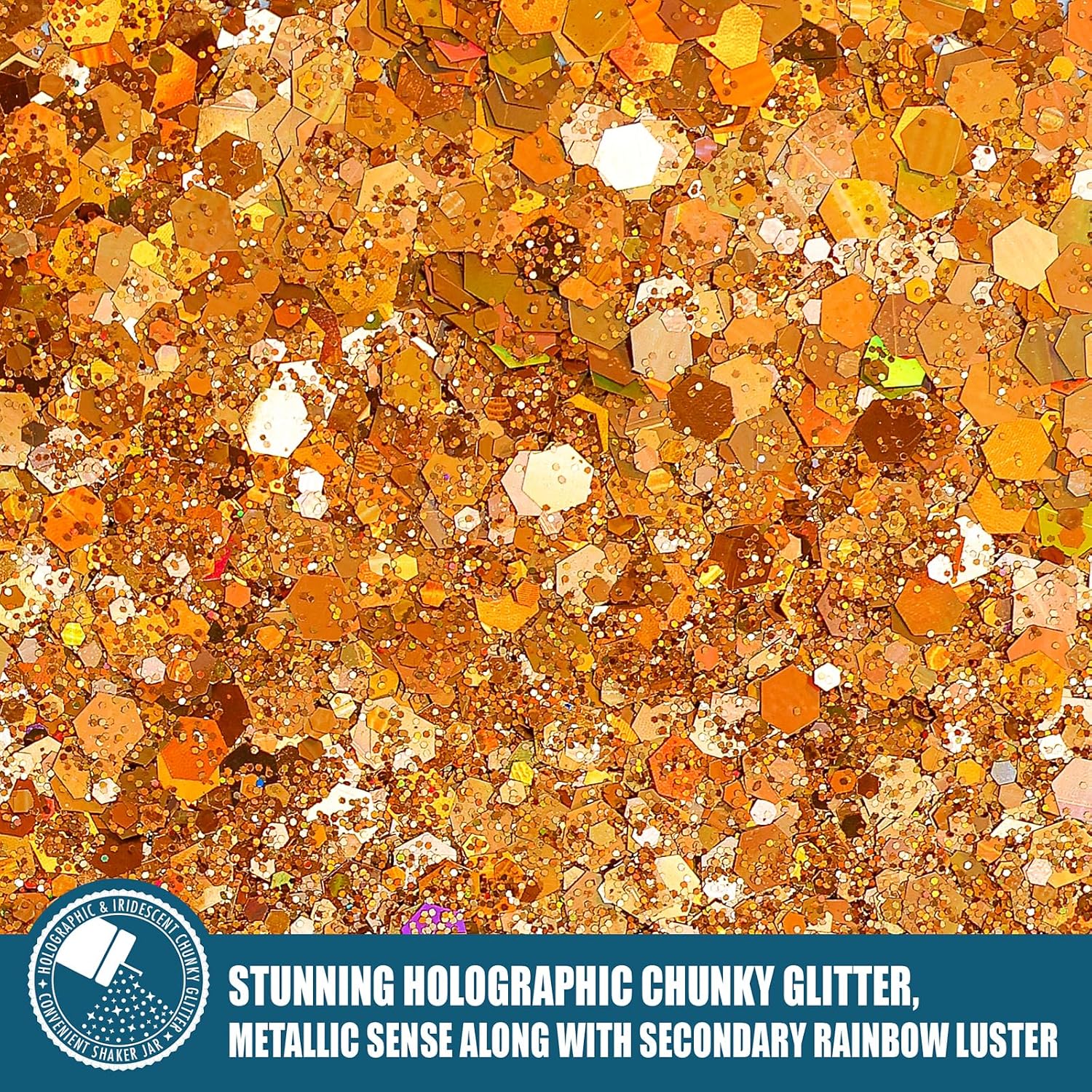 Estanoite Holographic Chunky Glitter, 160G/5.64OZ Craft Glitter for Resin, Metallic Iridescent Chunky Glitter Sequin Flake, Cosmetic Glitter for Makeup Body Nail Face Eye, Glitter Tumbler (Autumn)