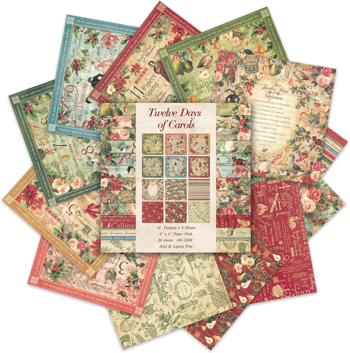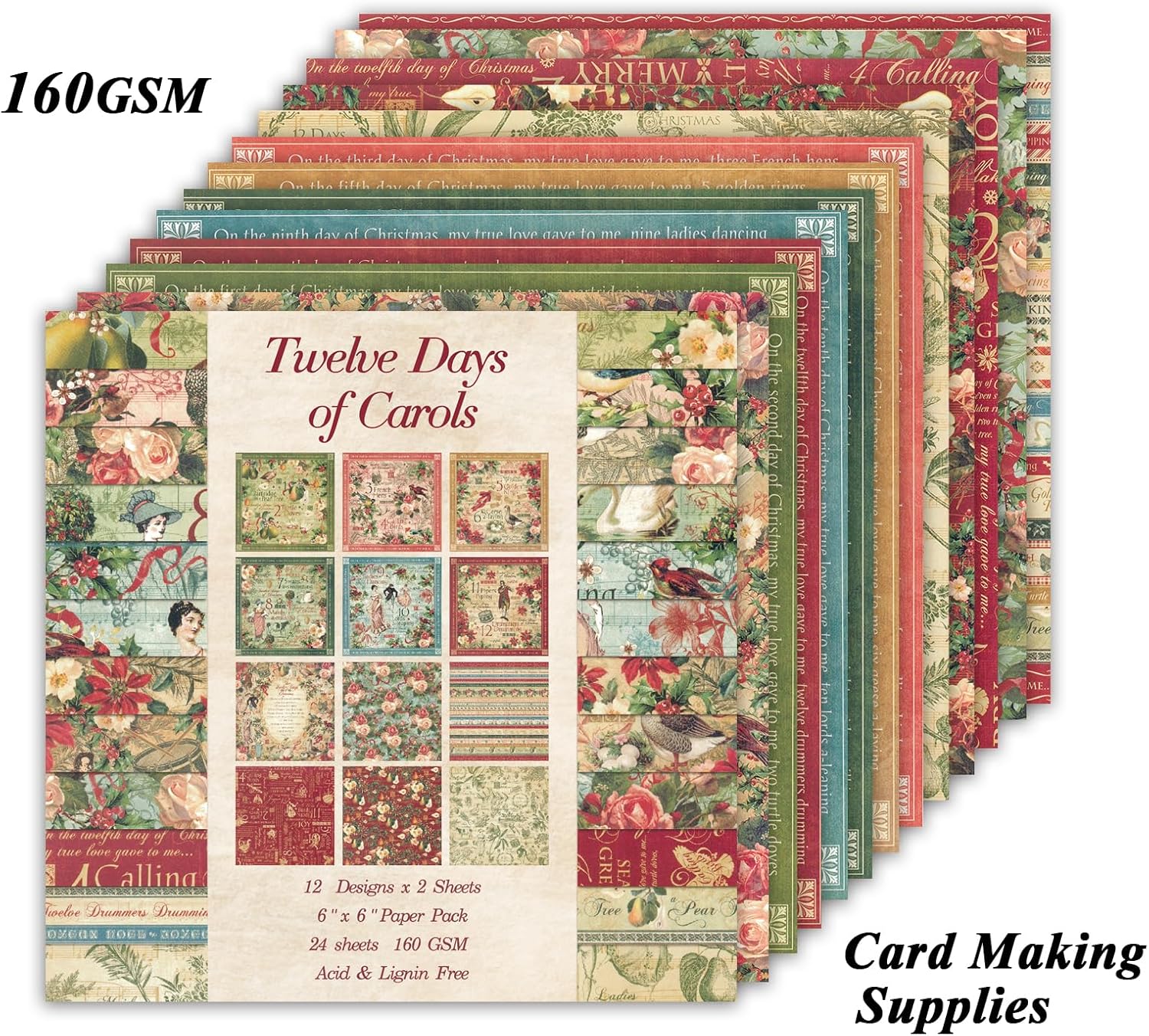 24 Sheets 12 Designs Scrapbook Paper Pad,6"×6” Single-Sided Decopodge Craft Cardstock Paper,Scrapbooking DIY Decorative Background Cardmaking Supplies.Carols