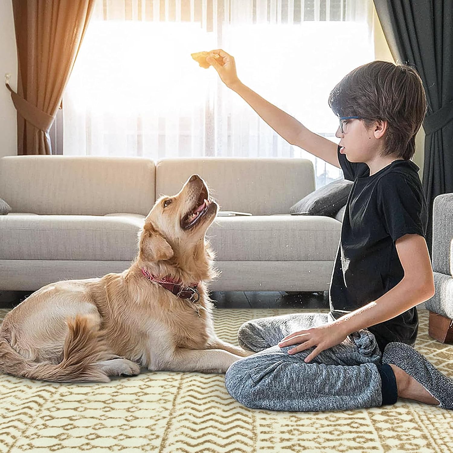 - Soft & Non-Shedding Rug: Our neutral area rug is made of faux wool, soft cozy material is friendly to pets and children's skin.The low-pile boho area rug features high density , pile almost non-shedding.The ultra soft touch protects your feet from the cold and hard floors, bringing comfort and warmth to your feet