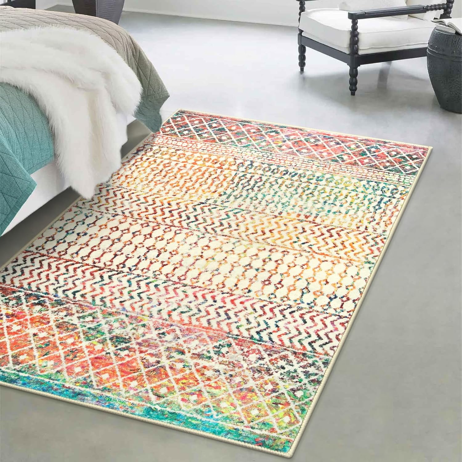 - Easy to Clean Washable Rug: The colorful rug for living room is easy to care for and washable, Keep your rug looking fresh with daily cleaning using a vacuum.For a deeper clean, simply toss in the washing machine on a gentle cycle with cold water , air dry and not need add bleach