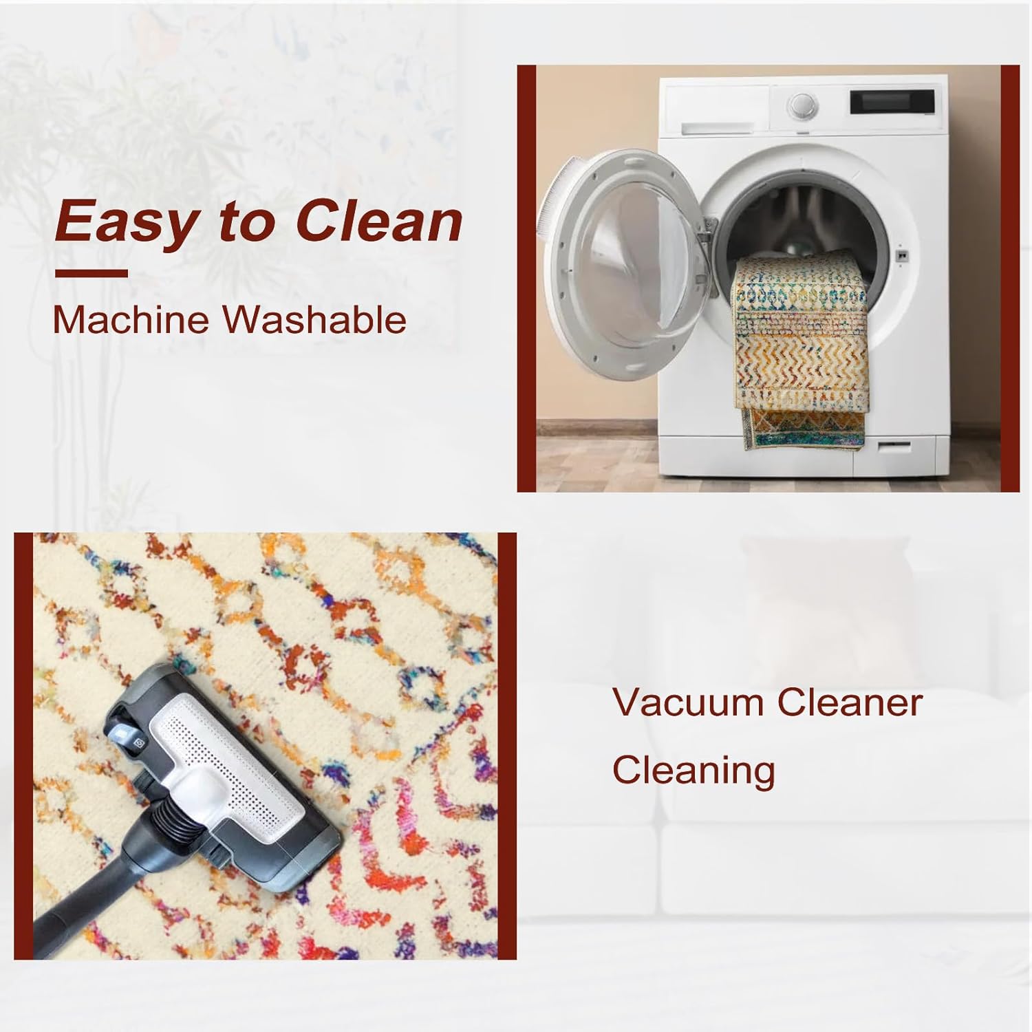 - Easy to Clean Washable Rug: The colorful rug for living room is easy to care for and washable, Keep your rug looking fresh with daily cleaning using a vacuum.For a deeper clean, simply toss in the washing machine on a gentle cycle with cold water , air dry and not need add bleach