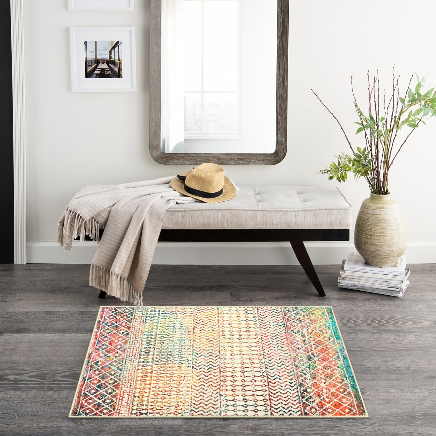 Moroccan Small Rug for Bedroom, 2x3 Colorful Rug Non-Slip Washable Indoor Door Mat, Soft Low-Pile Distressed Kitchen Mat Floor Carpets for Bedside Kitchen Entryway Bathroom