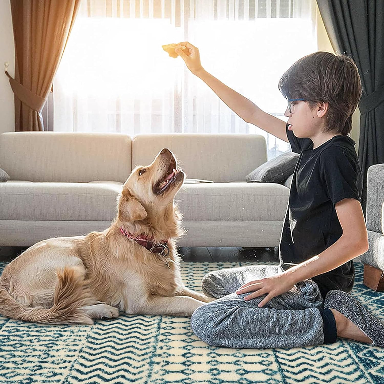 - Soft & Non-Shedding Rug: The blue area rug is made of faux wool, soft cozy material is friendly to pets and children's skin.The low-pile blue rug features high density , pile almost non-shedding.The ultra soft touch protects your feet from the cold and hard floors, bringing comfort and warmth to your feet
