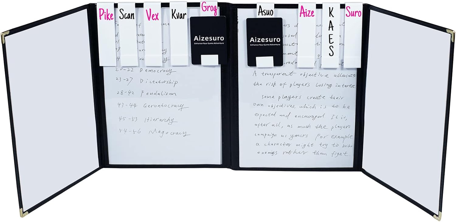 - Two-sided display: The tracker has a DM side and a player side that you can flip between. You can use wet erase markers on both sides to write anything you need.