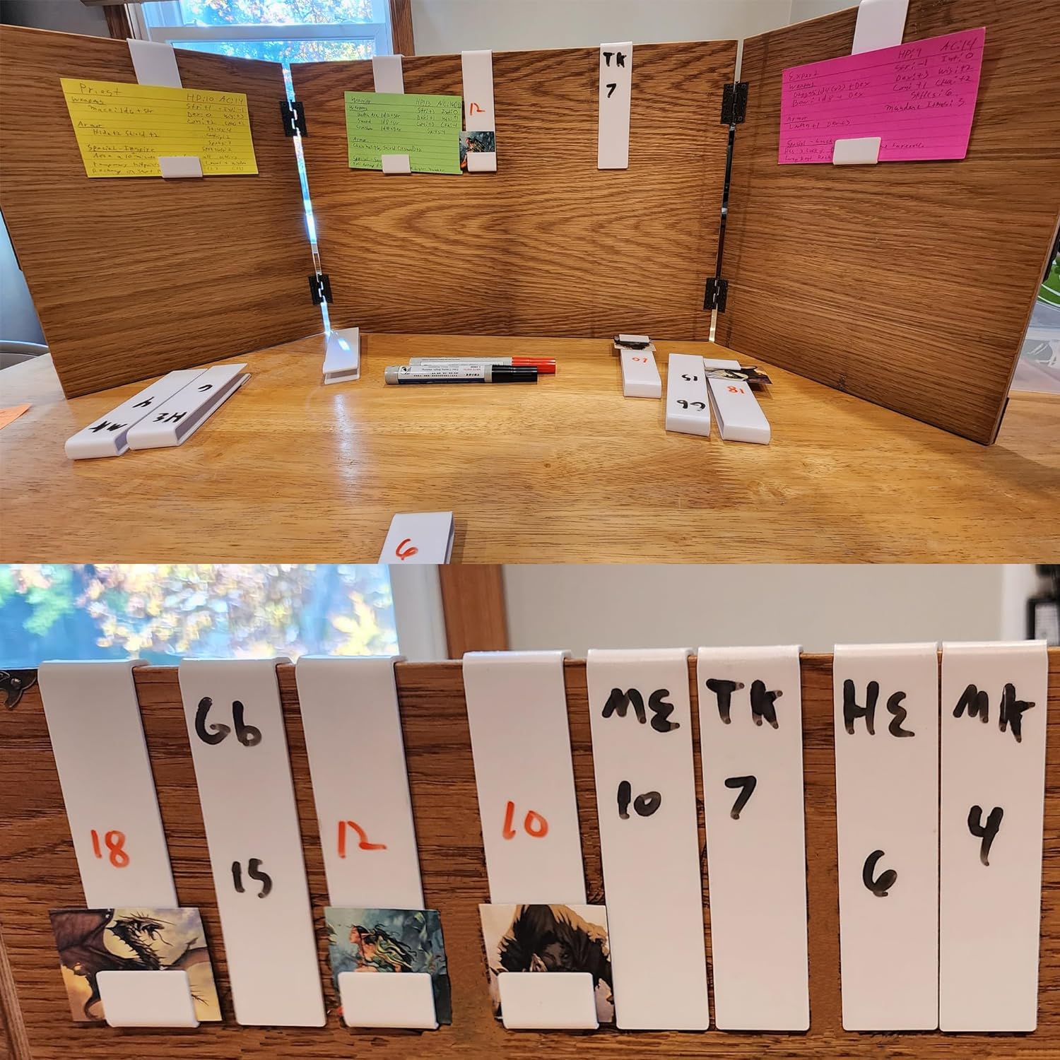 - Fits most DM screens: The tracker's acrylic material is flexible, so it can bend to fit DM screens that are 1-30mm thick. The card slot gaps are 6-10mm apart.