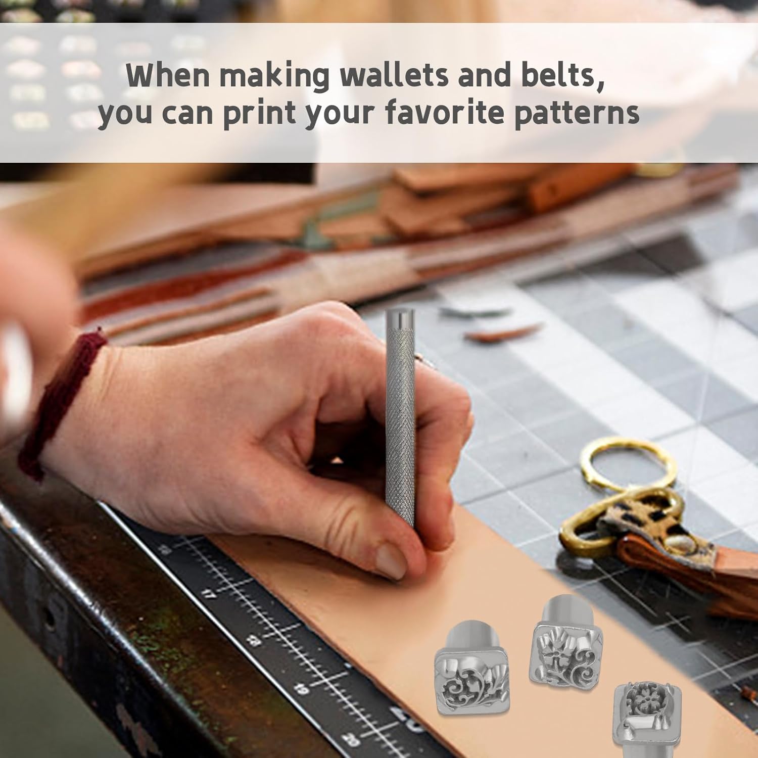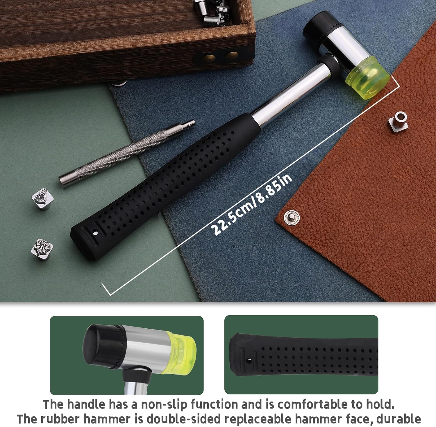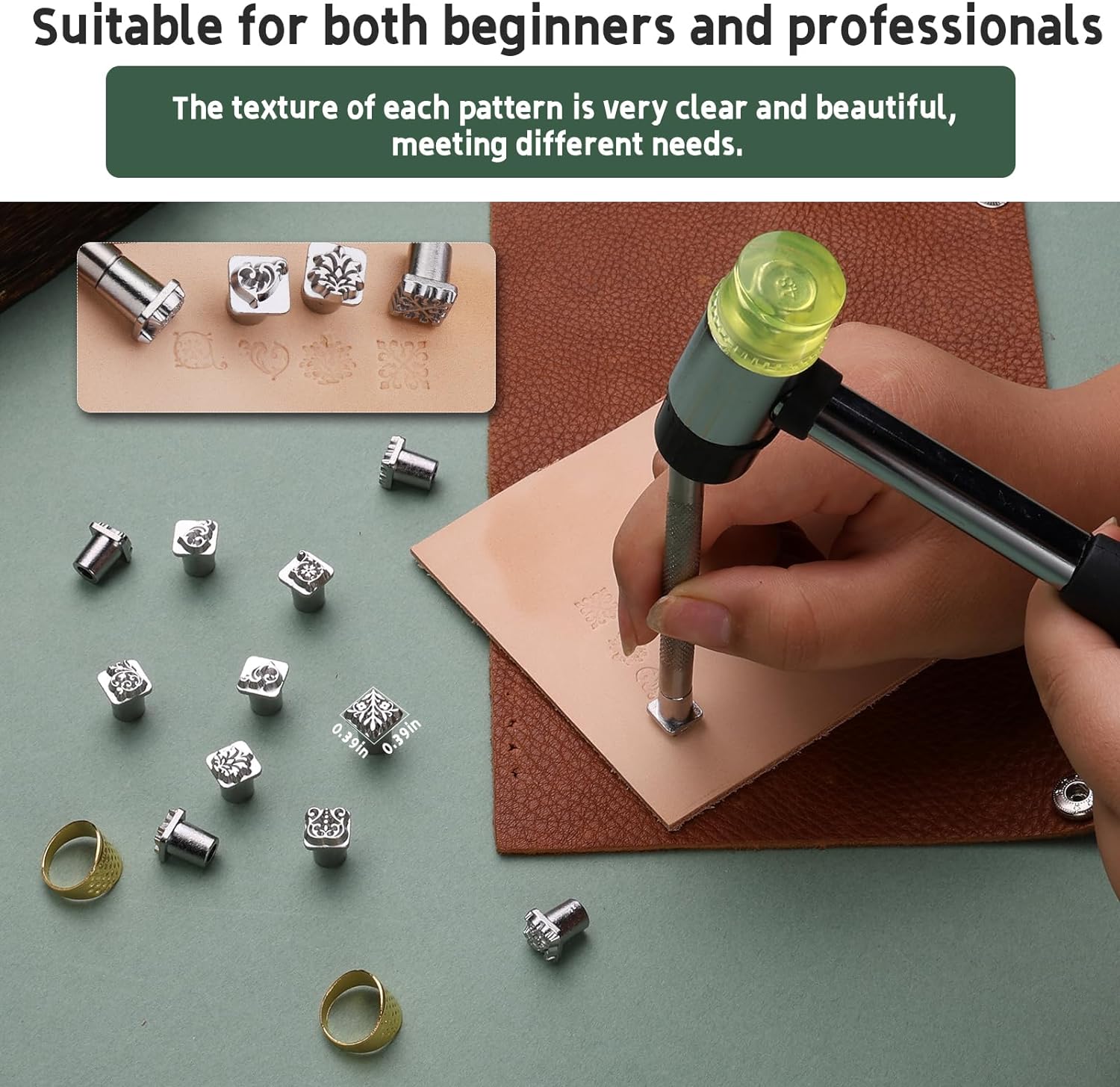 - Easy to use: The handle of our leather punch tools has non-slip texture, easy to hold, and the 25mm rubber hammer helps us to print and shape easily. This set of leather stamp tools is suitable for both beginners and professionals, you can apply it to your leather handmade DIY works to make your works more personalized and exquisite.
